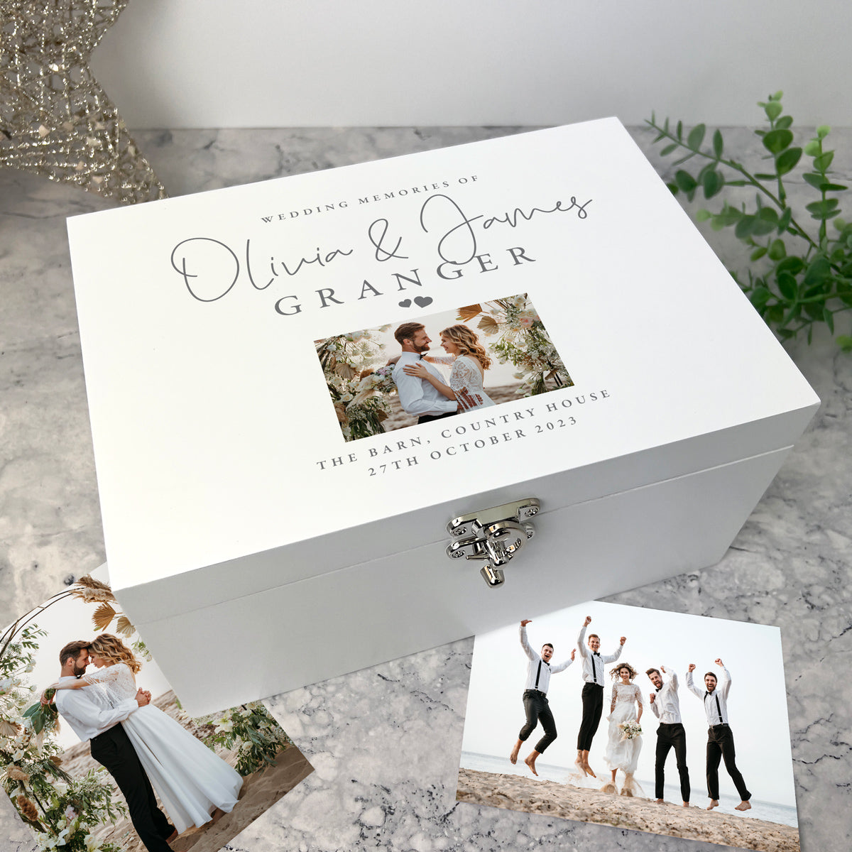 Personalised Wedding Photo Keepsake White Wooden Memory Box - 3 Sizes (22cm | 27cm | 30cm)