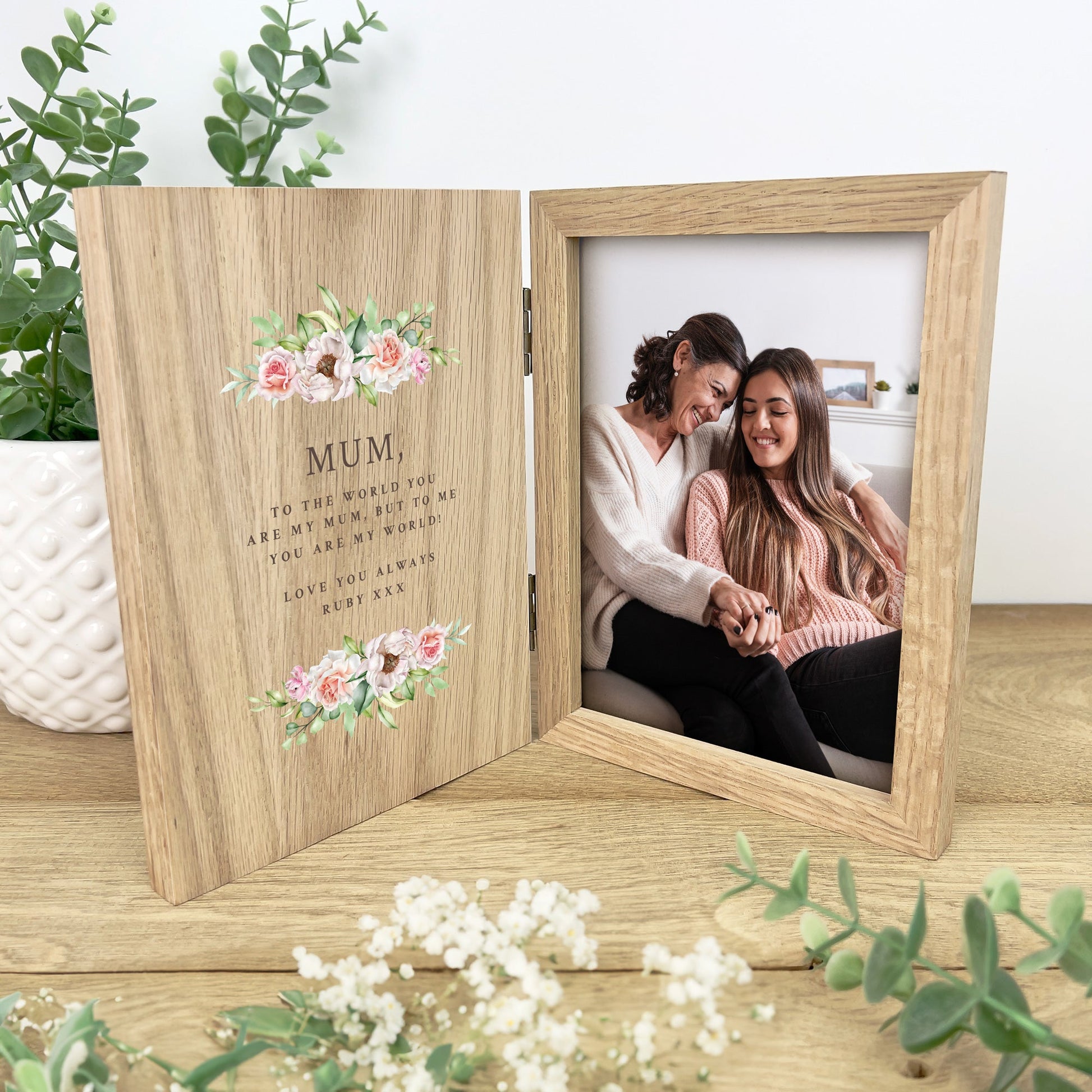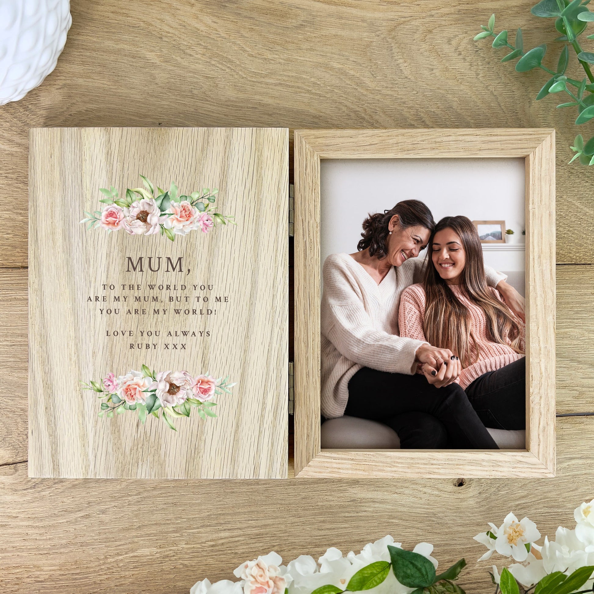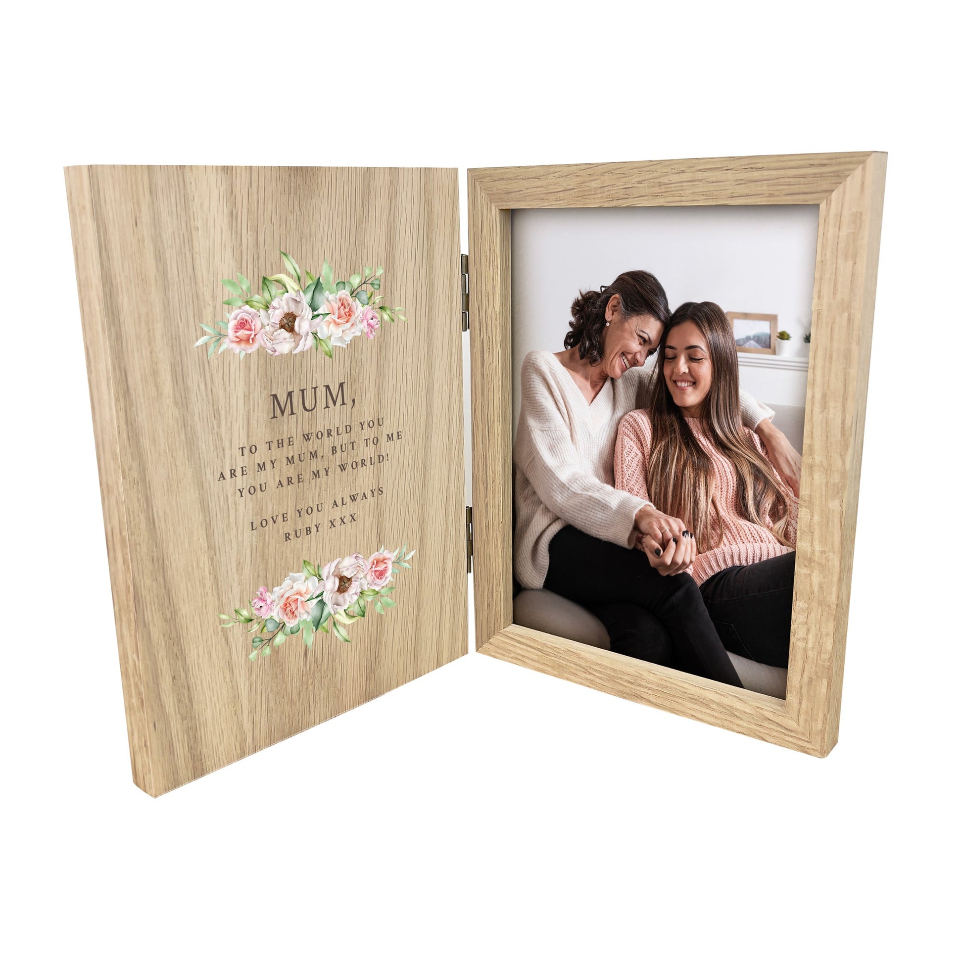 This lovely photo frame, featuring a pretty soft pink floral design, can be personalised for any occasion. It's a perfect gift for birthdays, Mother's Day, anniversaries, or weddings. Add 6 lines of your own message to make it truly special.
