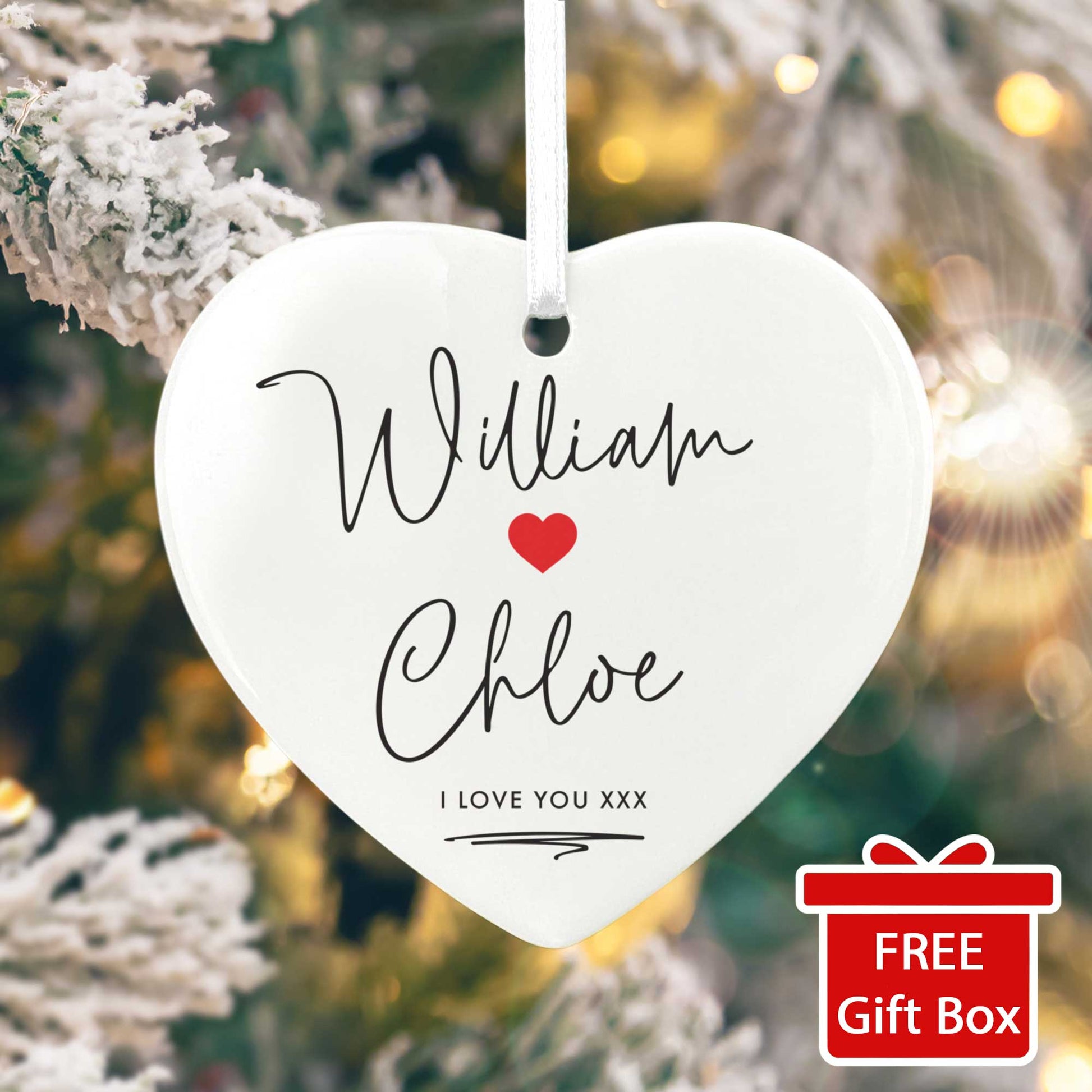 Celebrate a special couple this Christmas with this personalised ceramic heart ornament, ideal for marking their first Christmas together or any cherished Christmas anniversary. Carefully packaged in a white gift box with protective foam, it makes a heartfelt and thoughtful present during the festive season. You can customise this ceramic keepsake with two names and a personalised message to make it truly unique.
