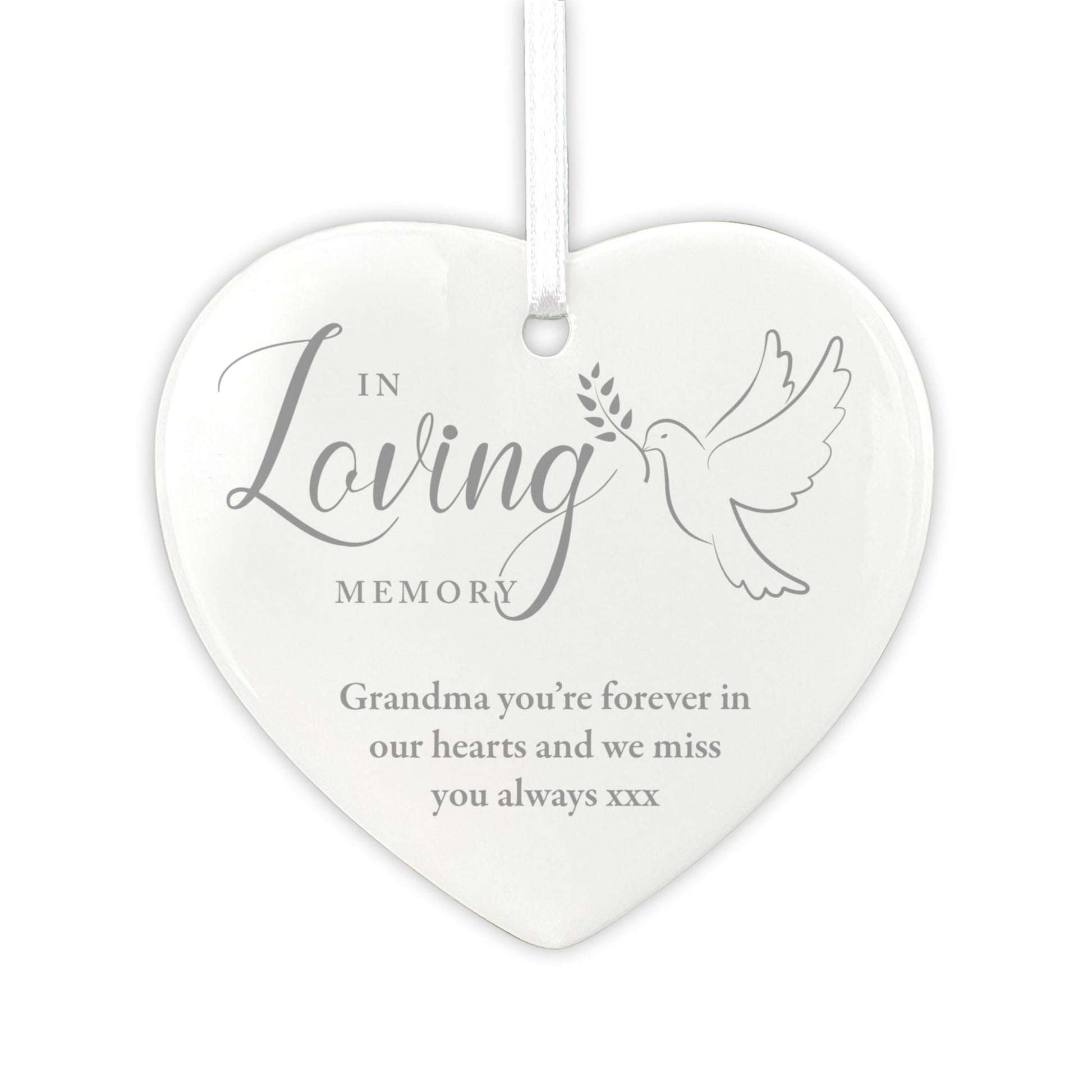 In Loving Memory Dove Ceramic Heart Hanging Decoration + Gift Box