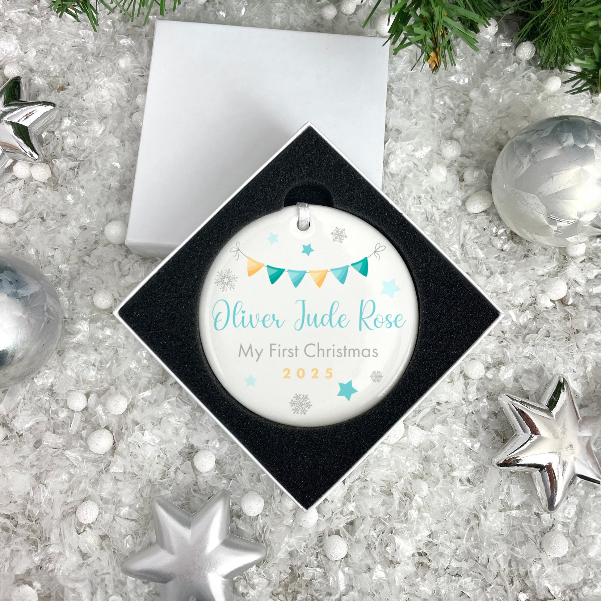 My First Christmas Baby Boy Garland Ceramic Disc Hanging Decoration + Gift Box