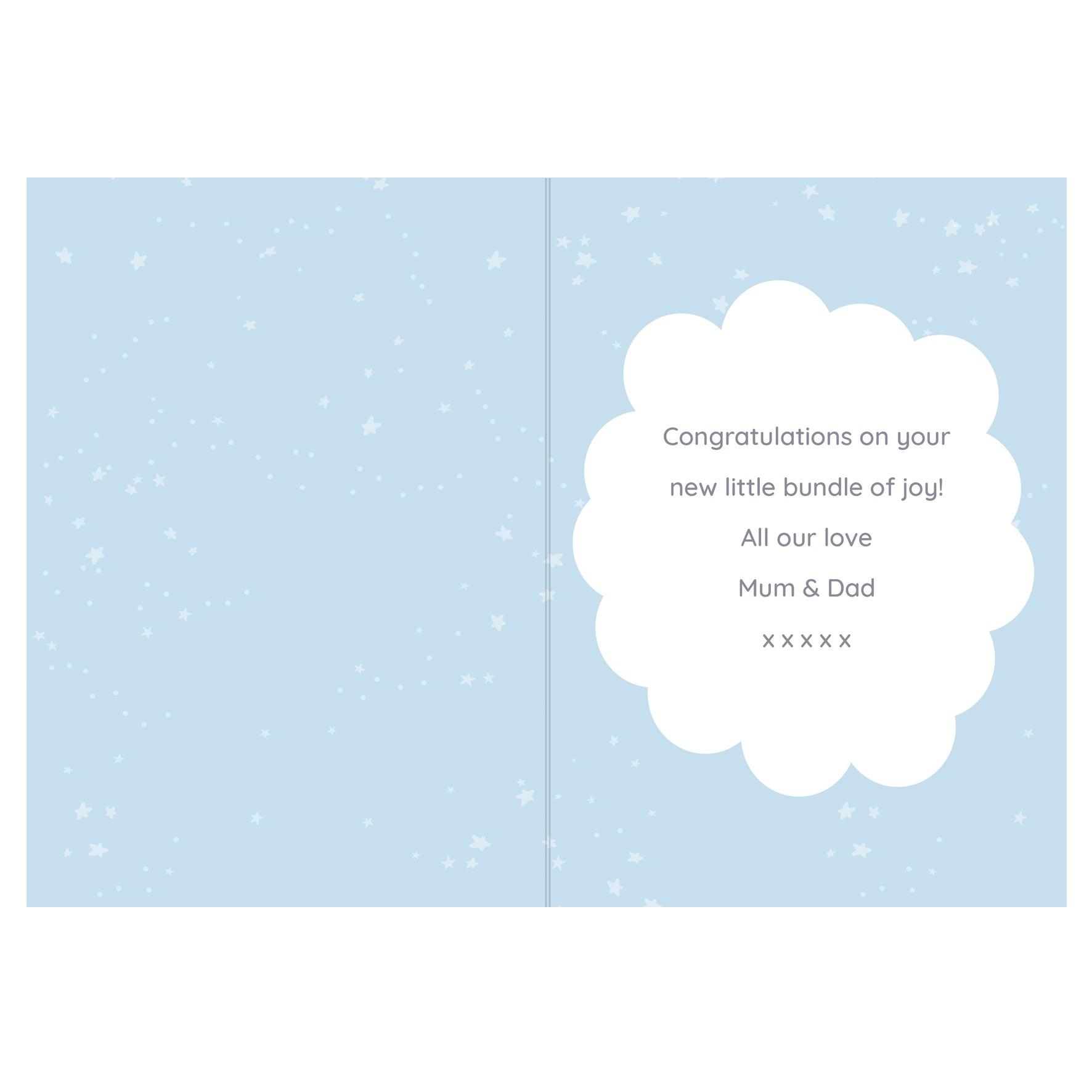 This card can be personalised with 2 lines of text, with up to 20 characters per line on the front. Inside, this card can be personalised with 5 lines of text, with up to 25 characters per line.