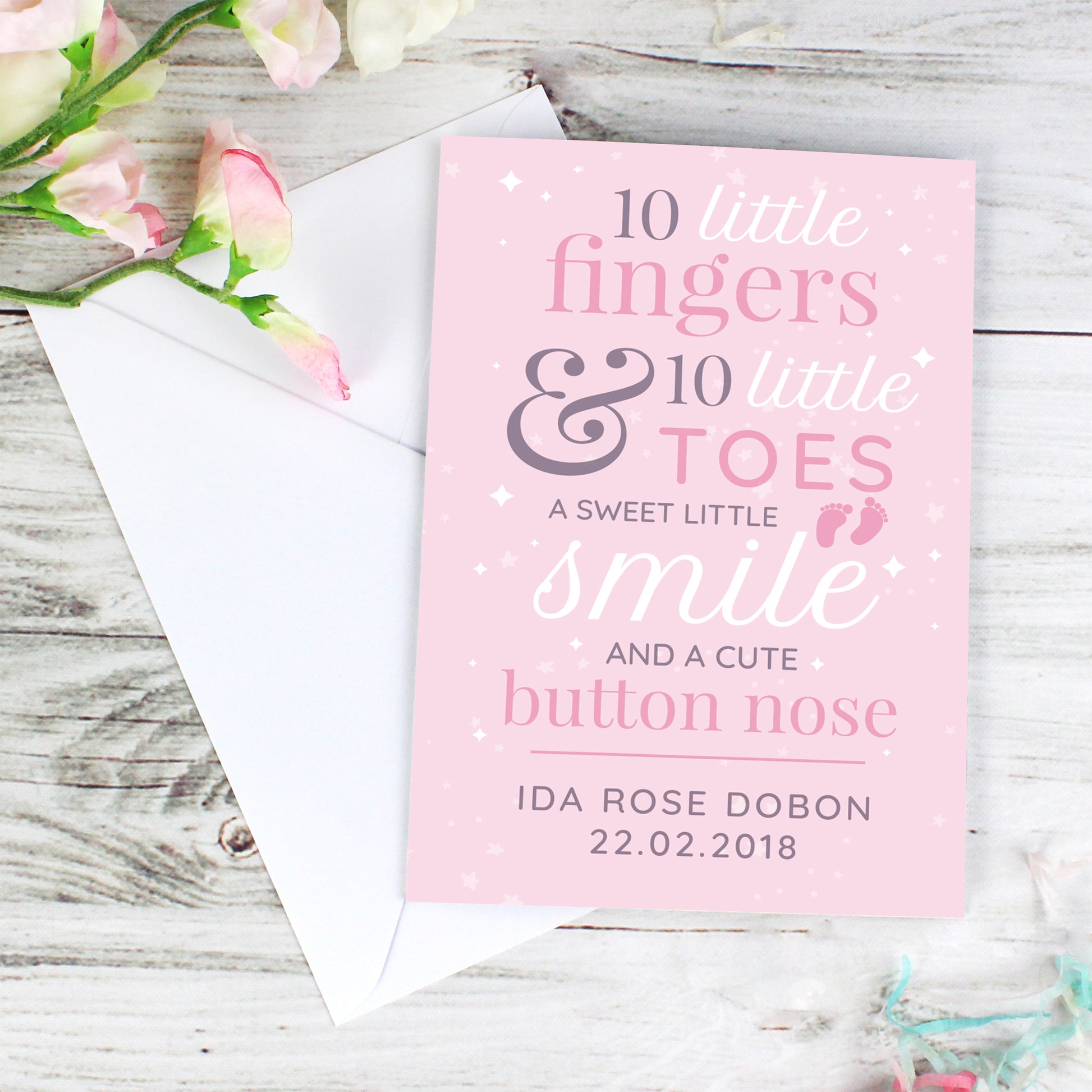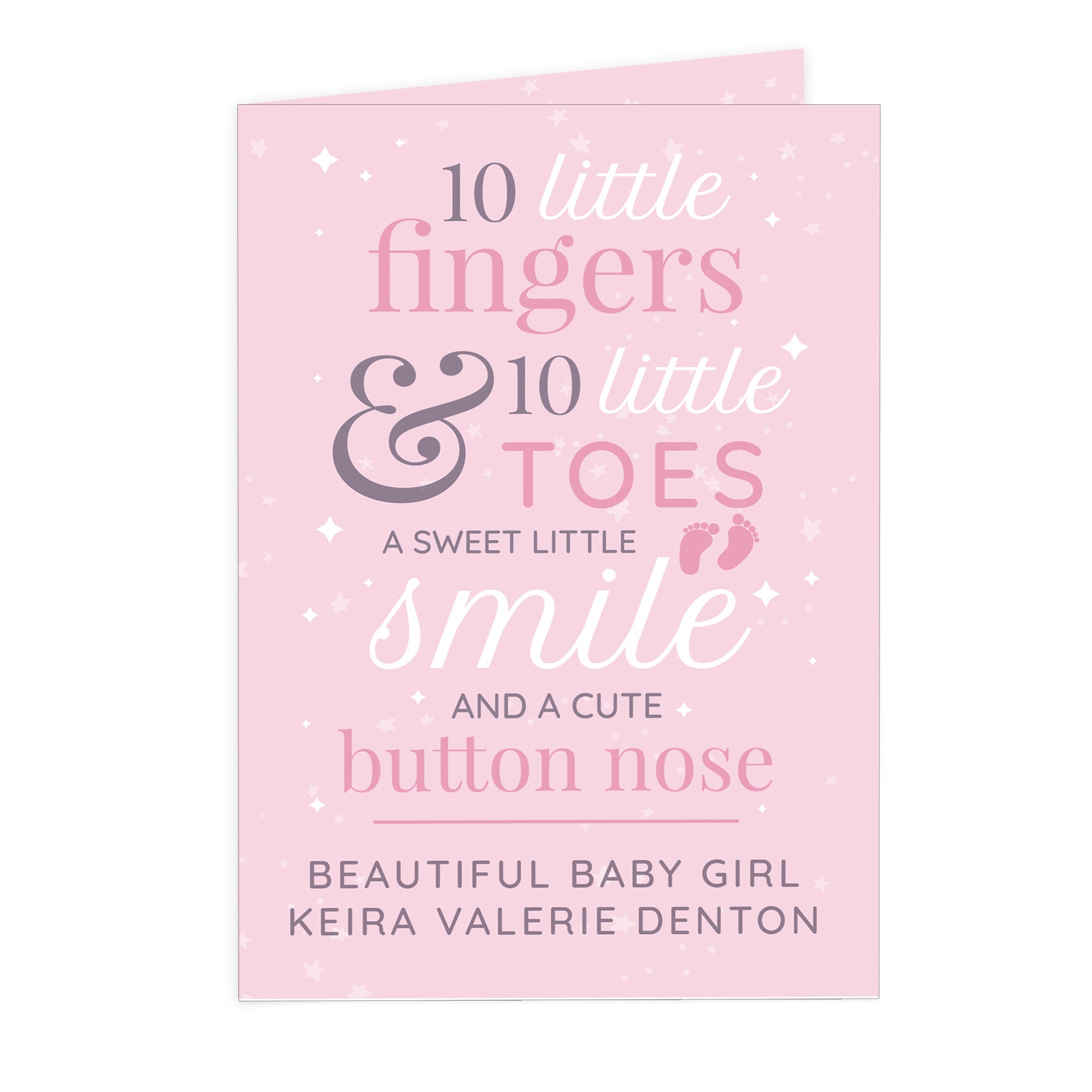 Personalised '10 Little Fingers' Pink Baby Card