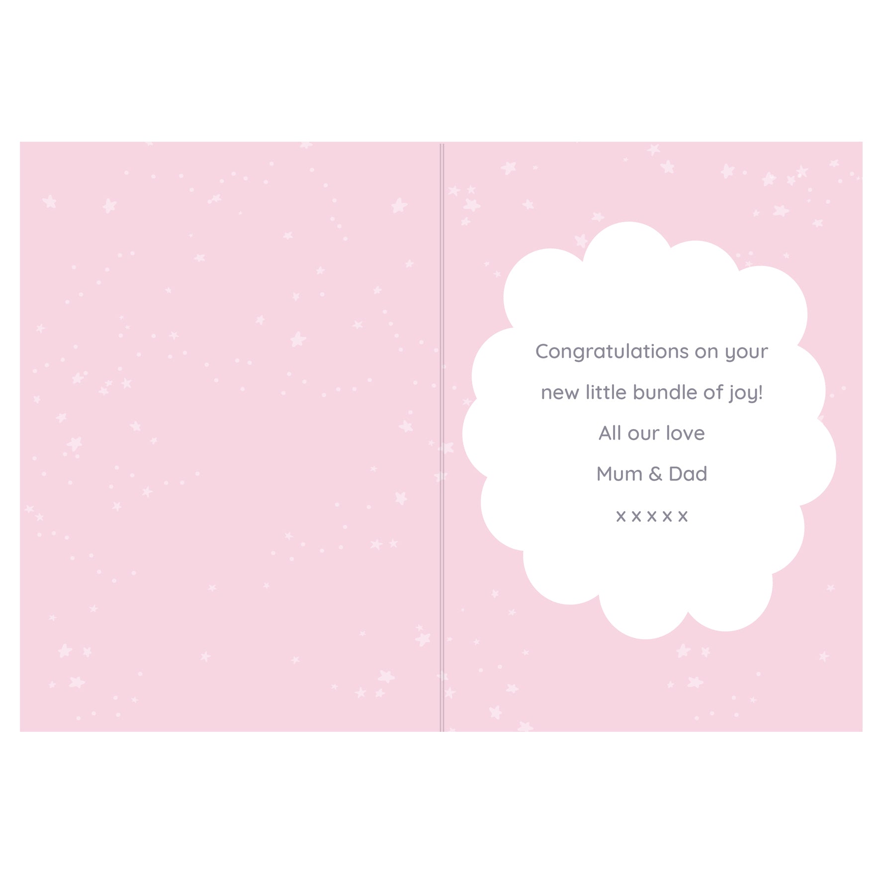 This card can be personalised with 2 lines of text, with up to 20 characters per line on the front. Inside, this card can be personalised with 5 lines of text, with up to 25 characters per line.