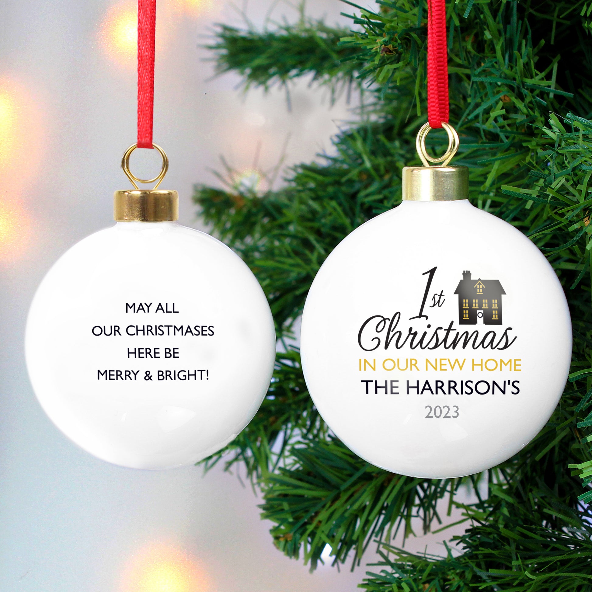 The words '1st Christmas in our new home' are fixed and cannot be amended.