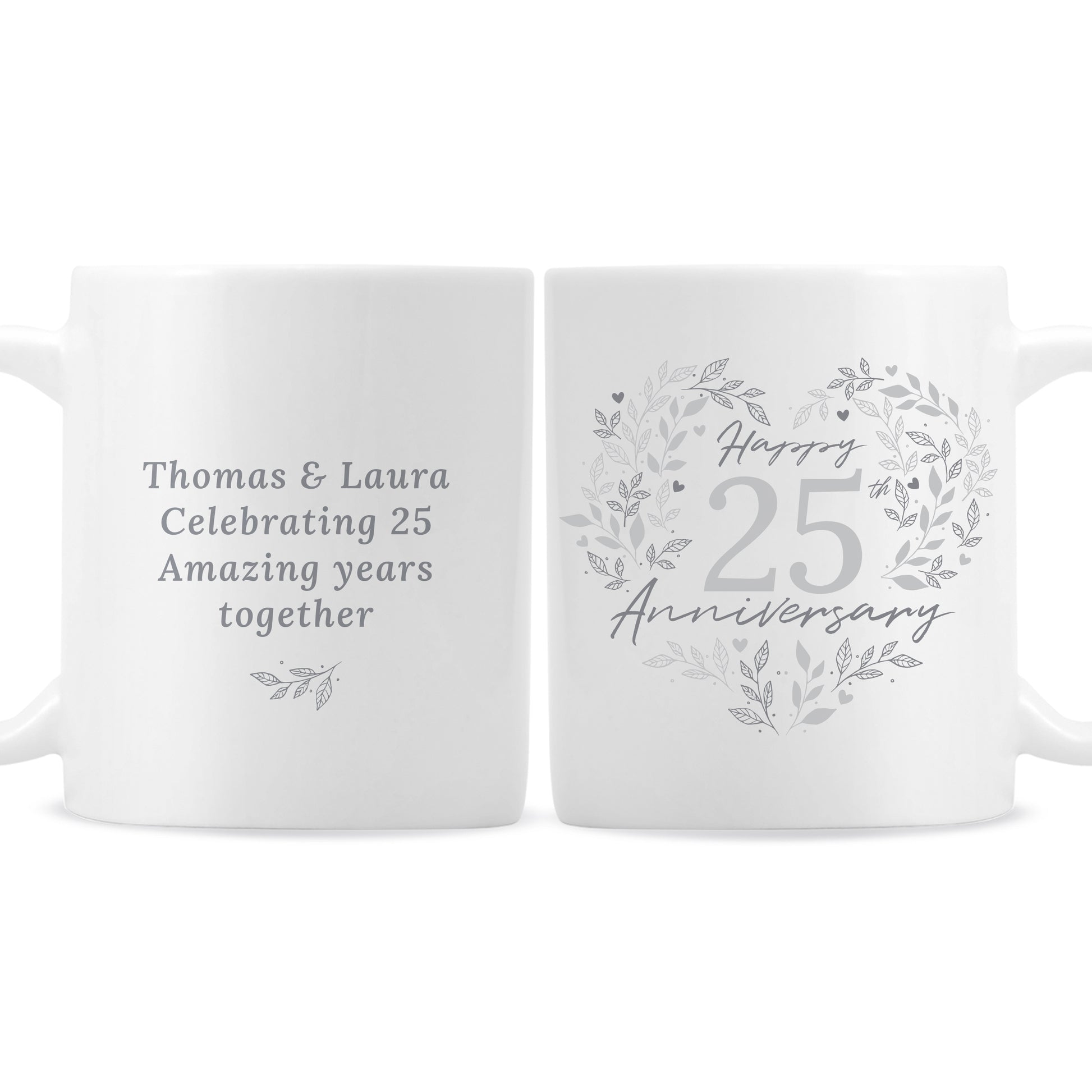 Featuring our "25th Anniversary" design on the front, you can then personalise with a special message, over 4 lines of 25 characters per line, on the reverse of mug.