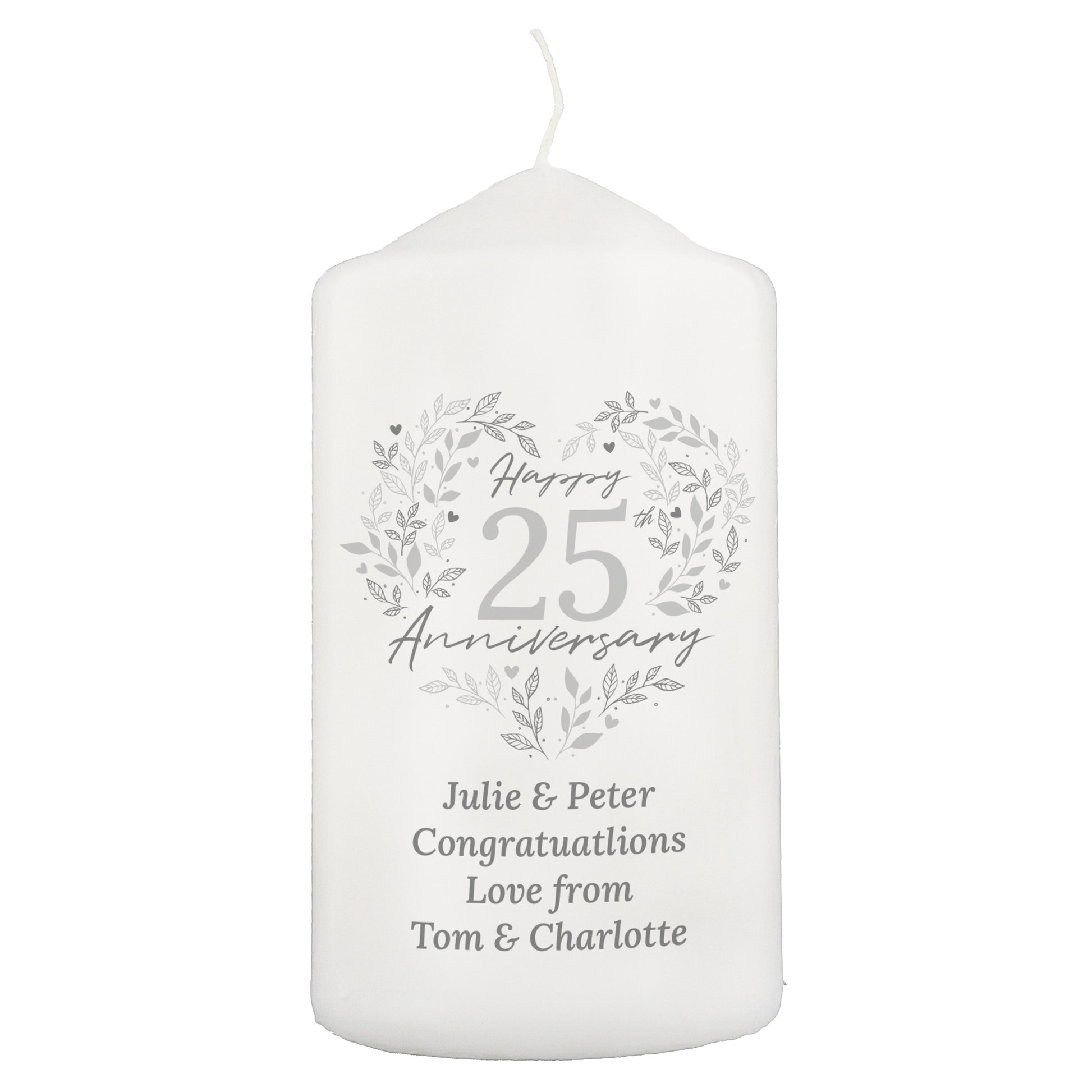 Personalised 25th Silver Wedding Anniversary Pillar Candle
