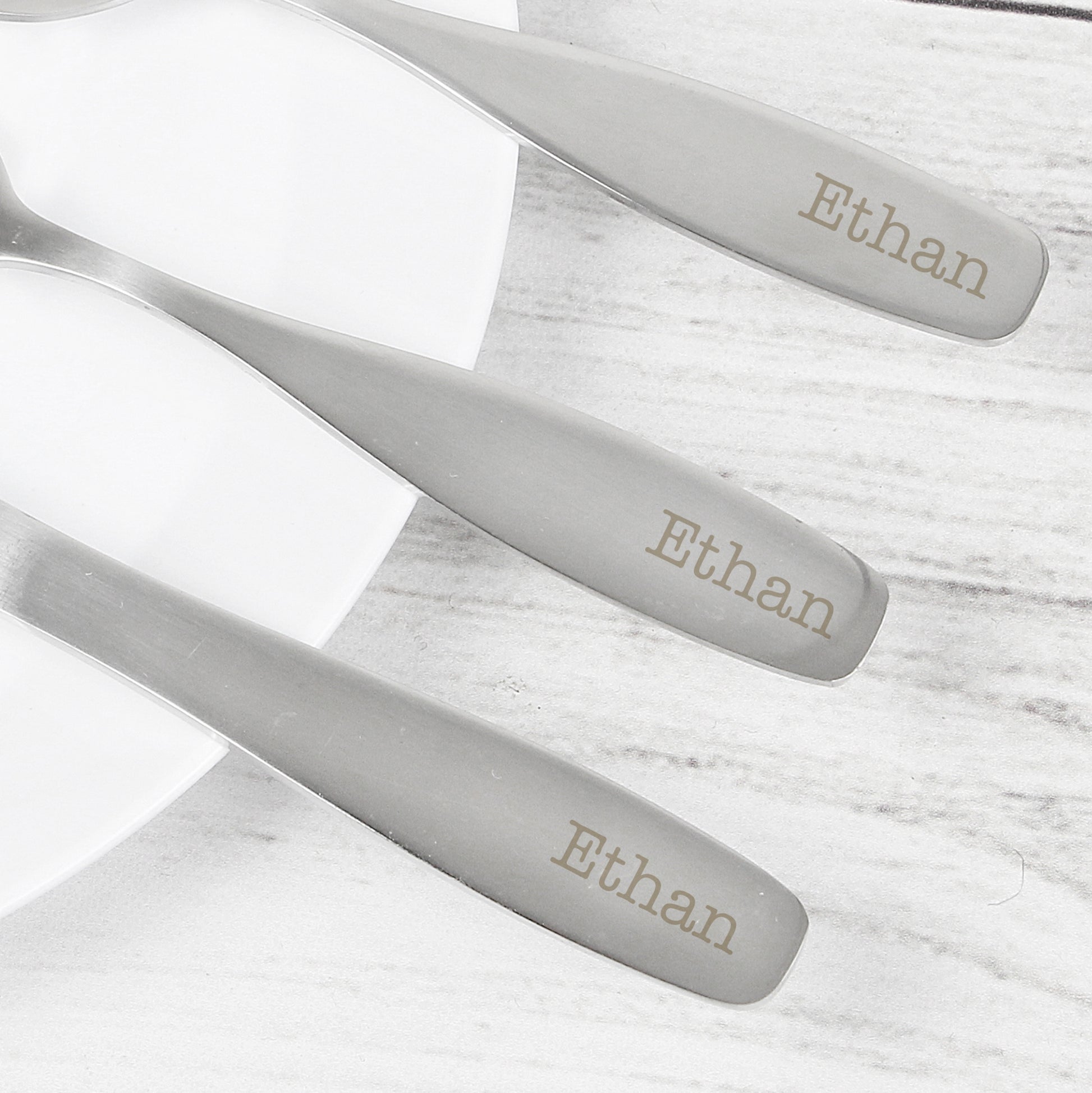 This cutlery set can be personalised with any name up to 15 characters.