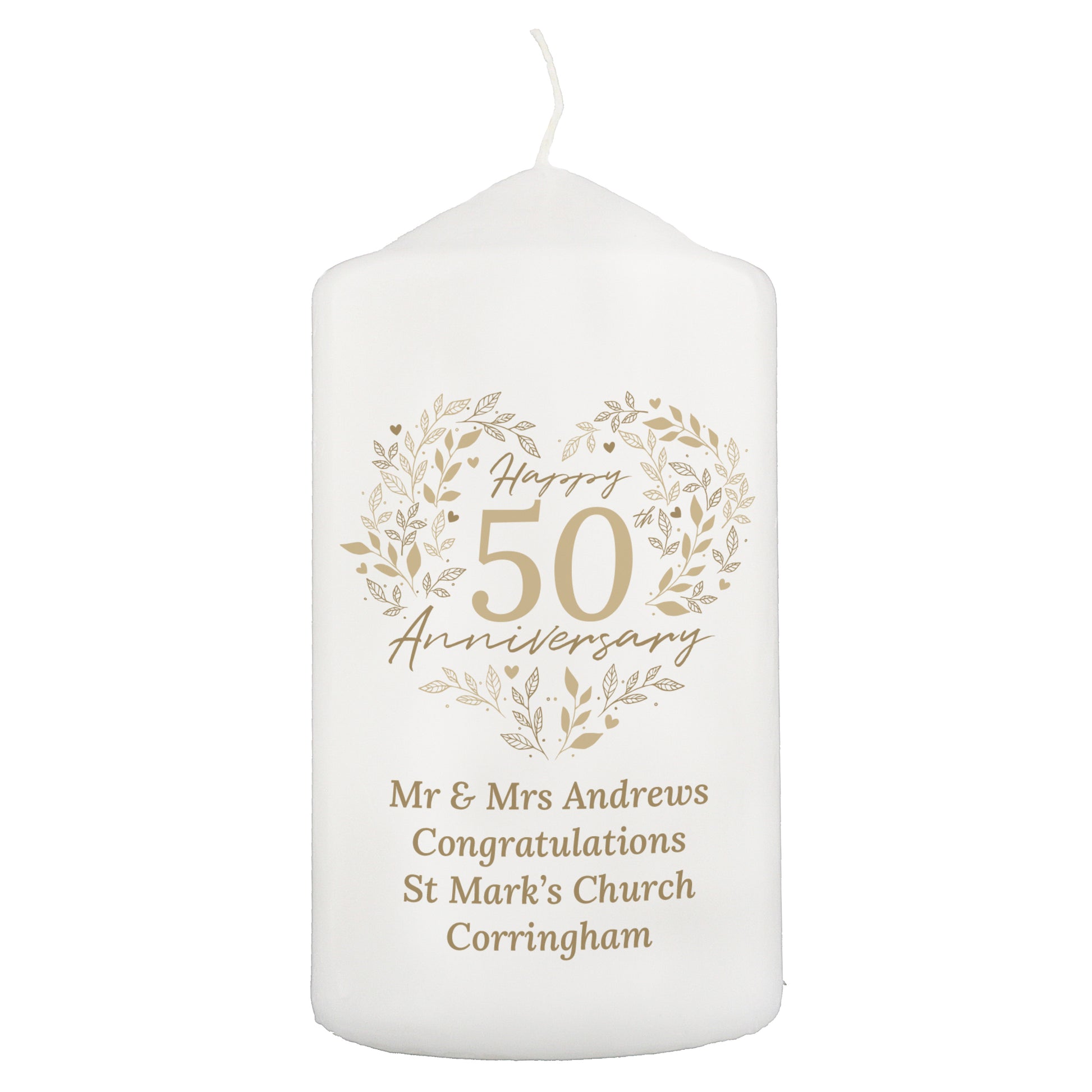 Personalised 50th Golden Wedding Anniversary Pillar Candle
