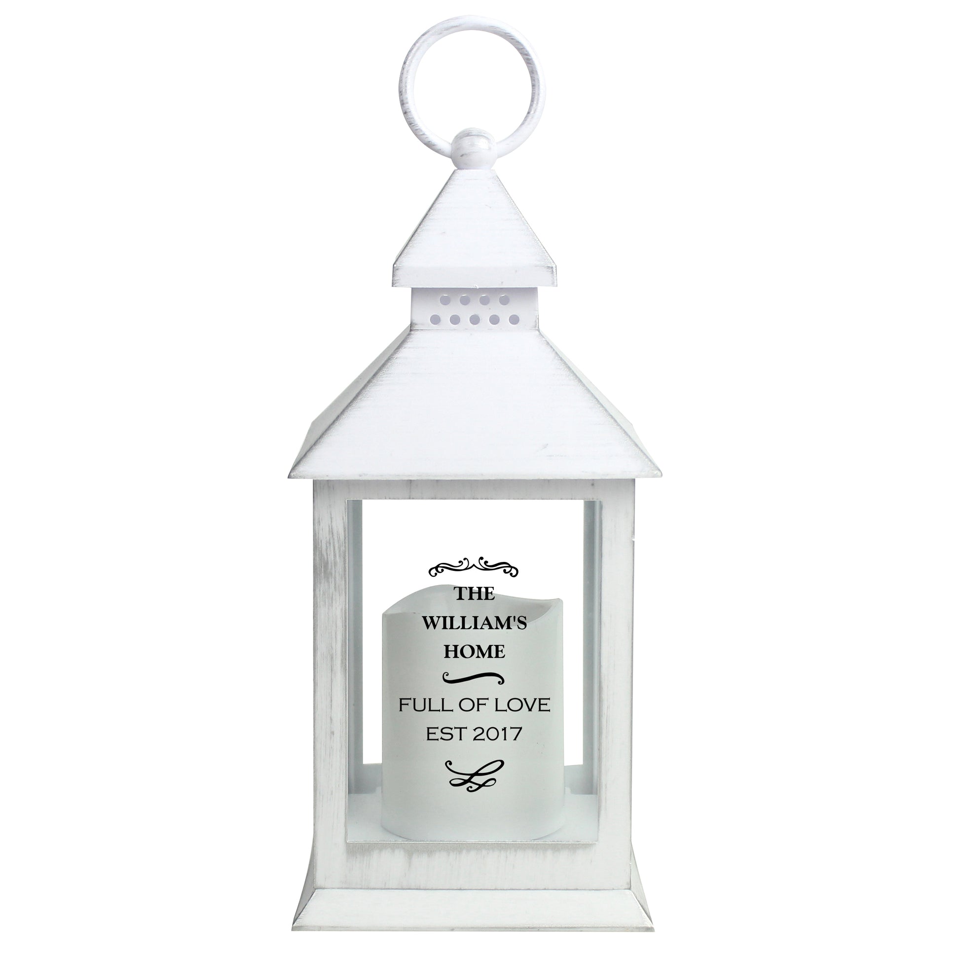 The lantern can be personalised with 5 lines of text, with up to 15 characters per line.