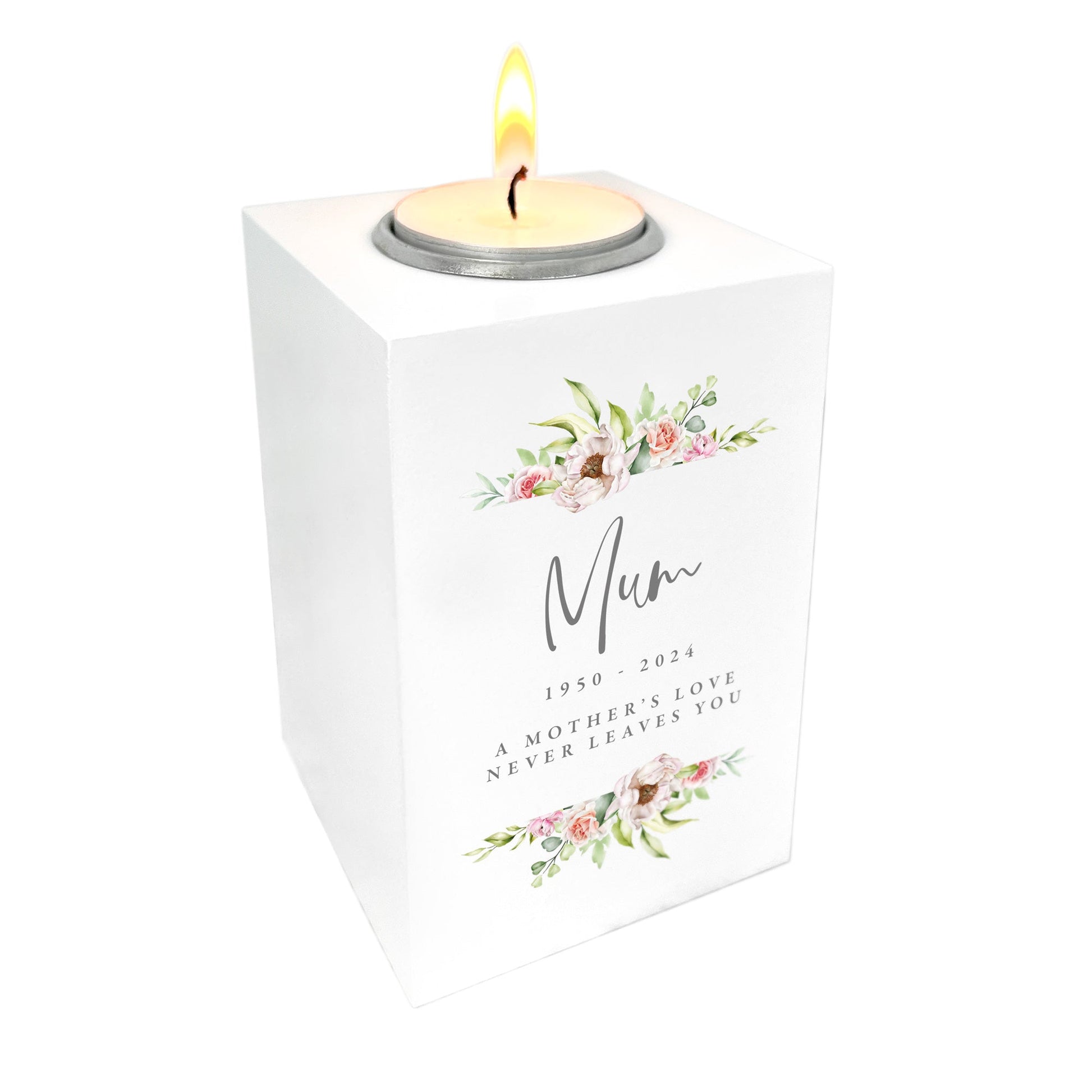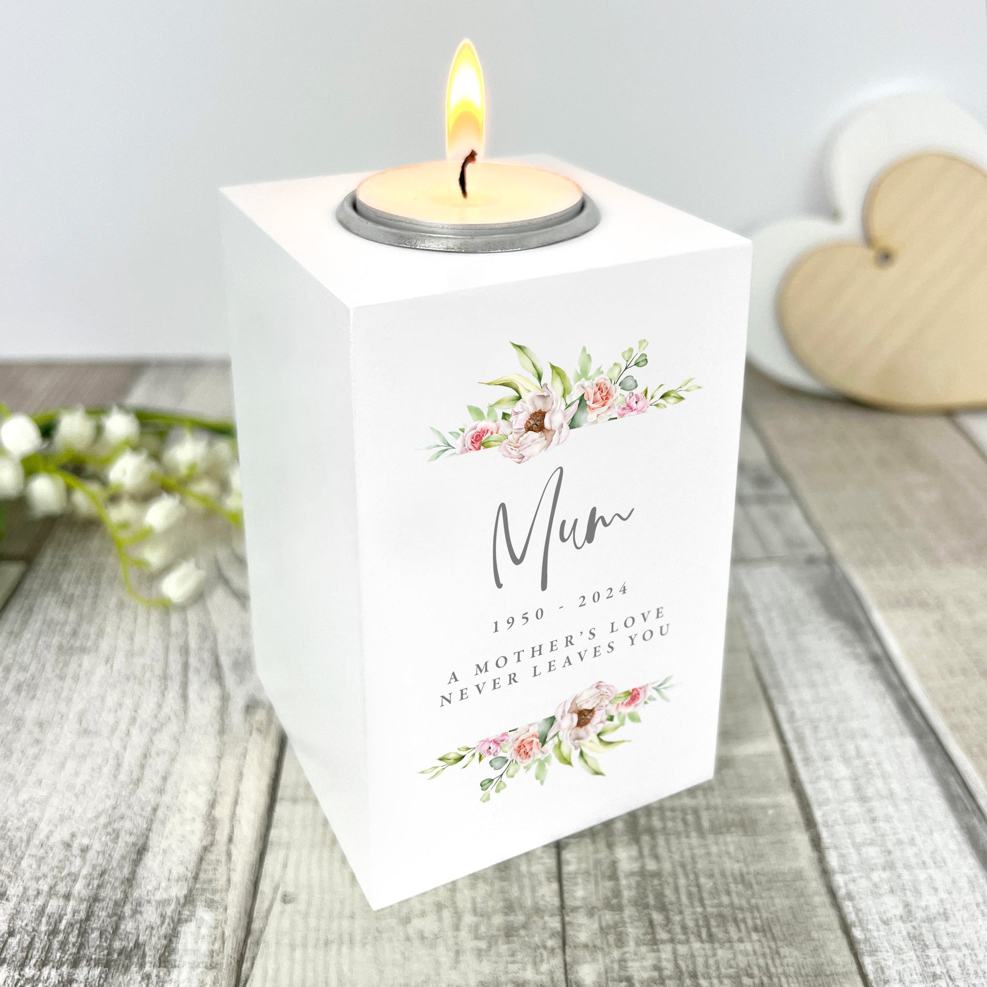 Delight someone special with this lovely floral personalised tea light holder, perfect as a memorial candle or for other occasions like Mother's Day, birthdays, or anniversaries.
