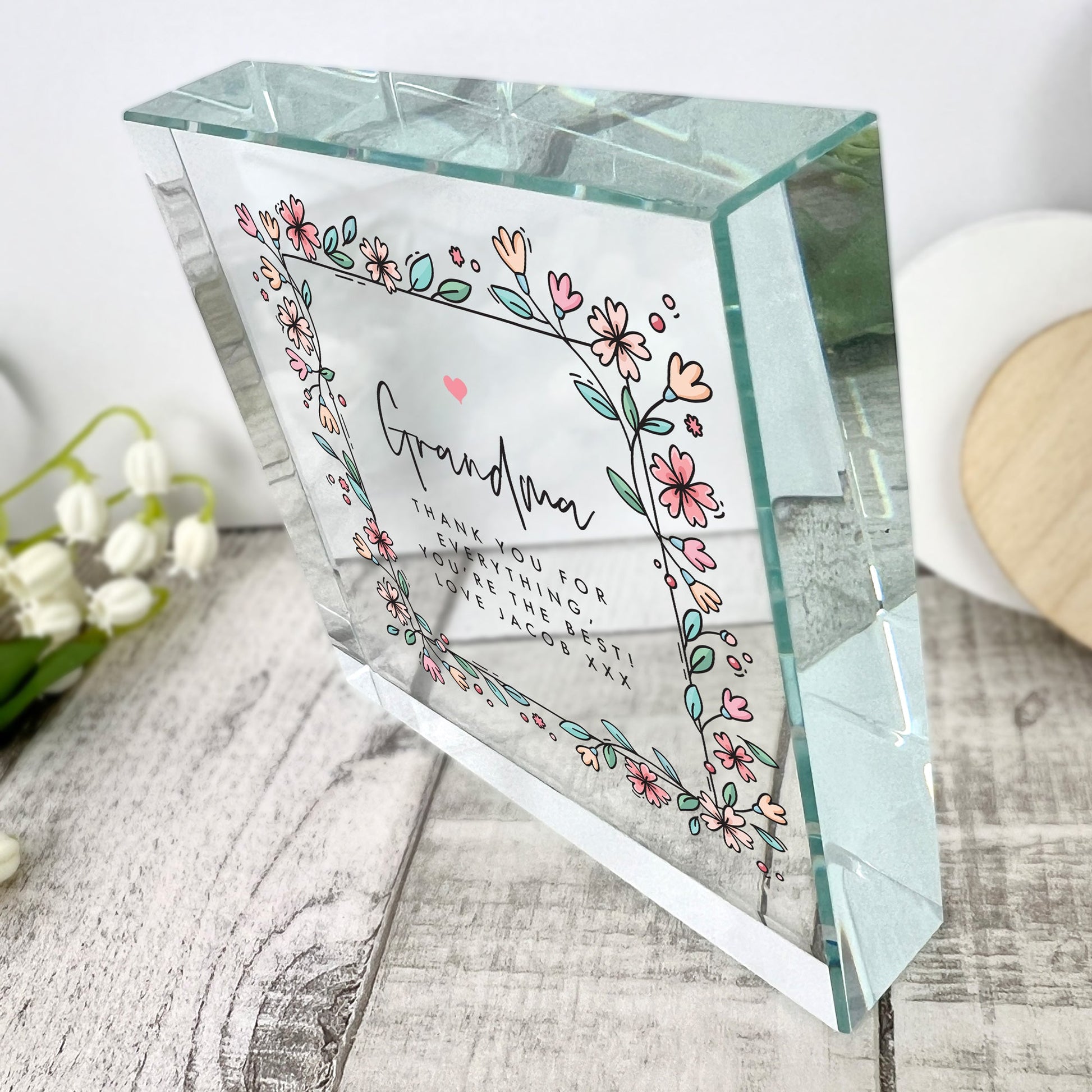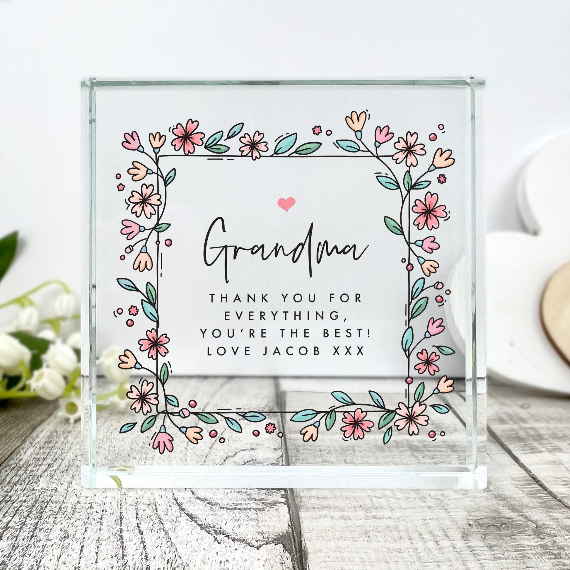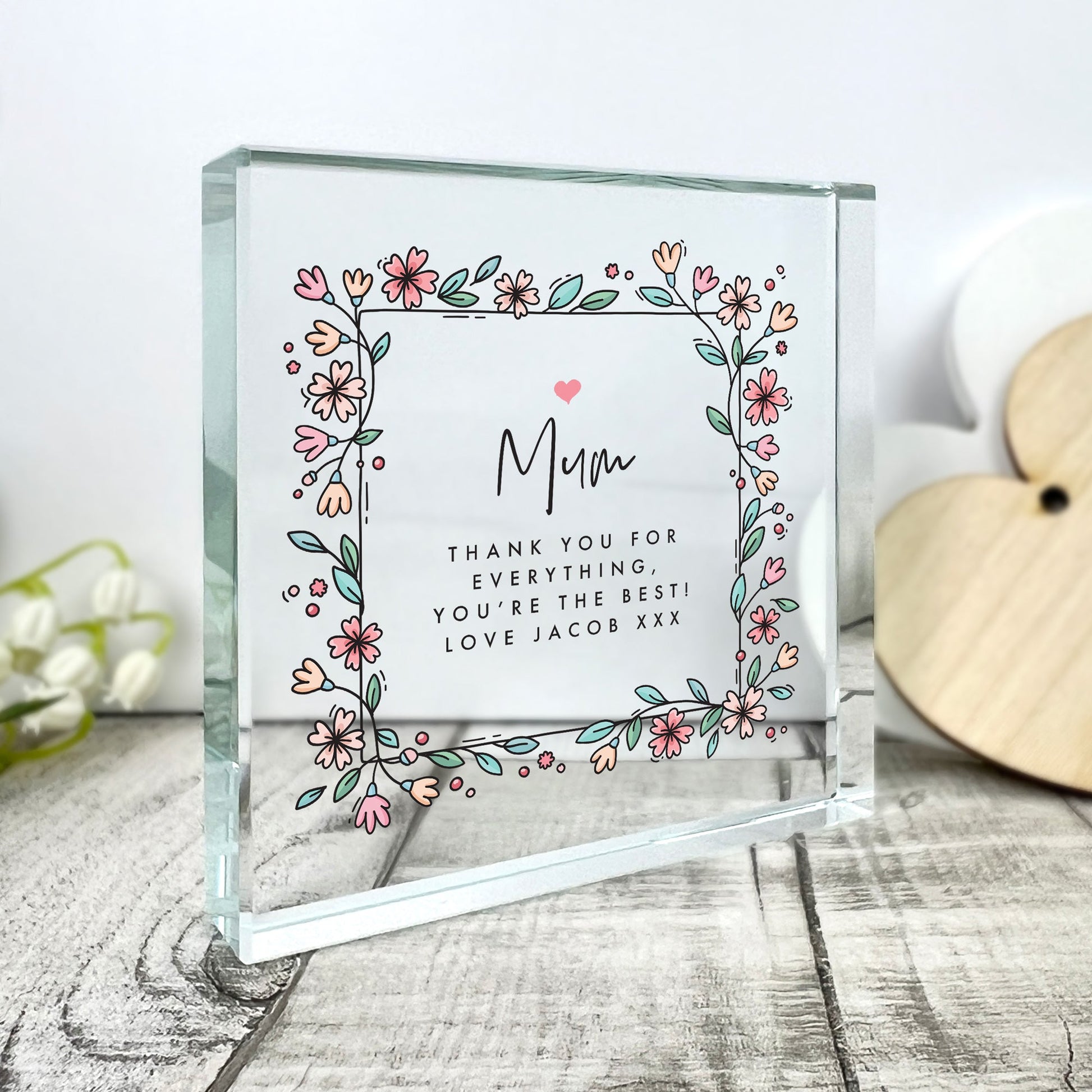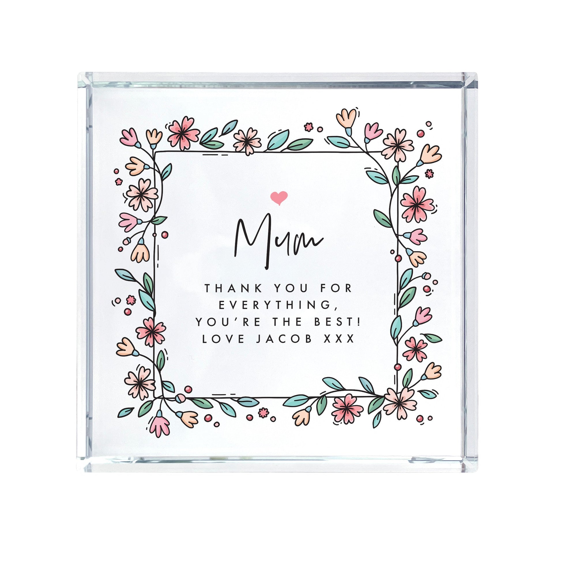 This glass token features a pretty floral border design and can be personalised with up to five lines of text.