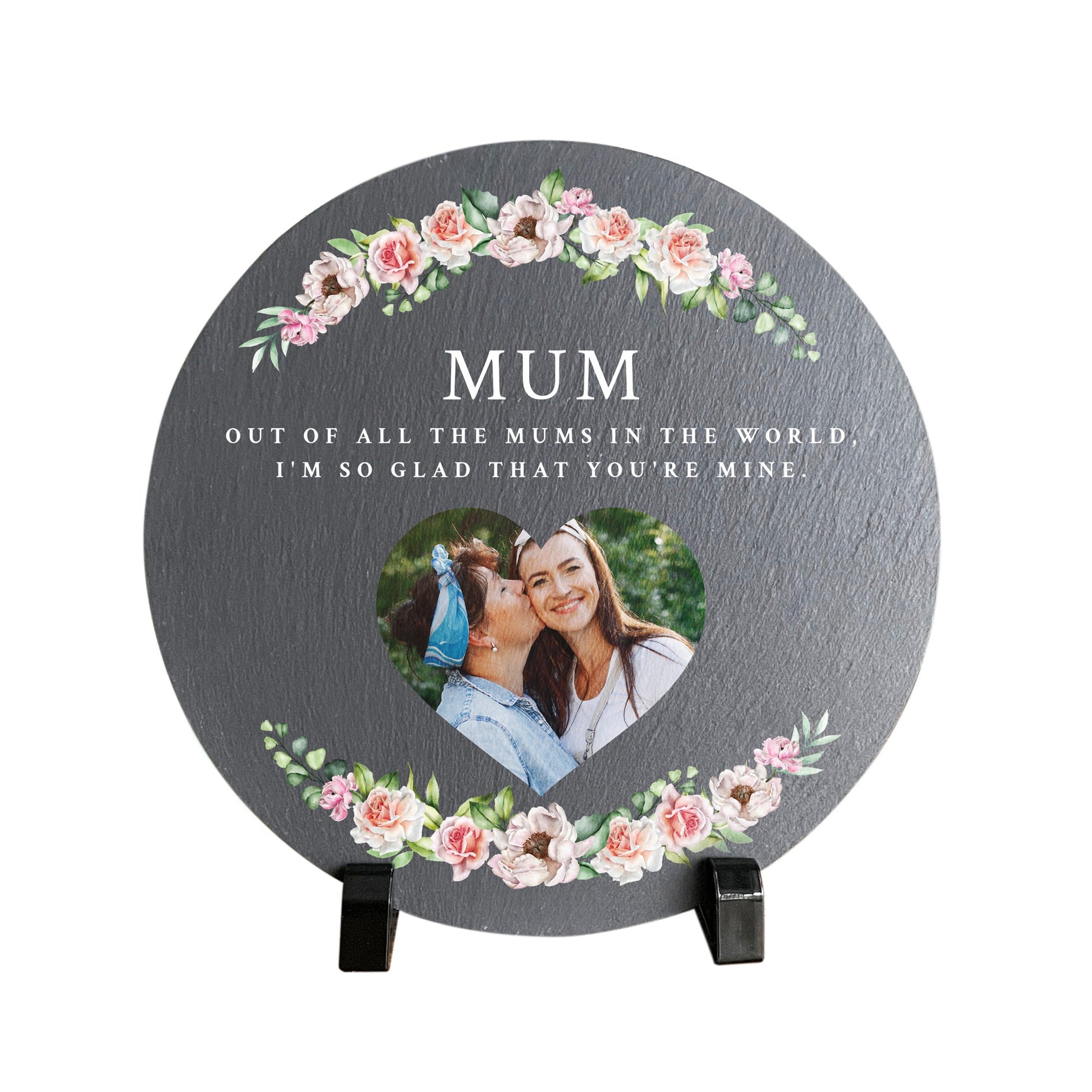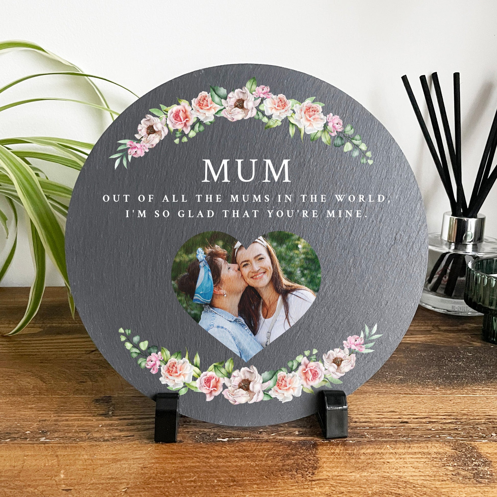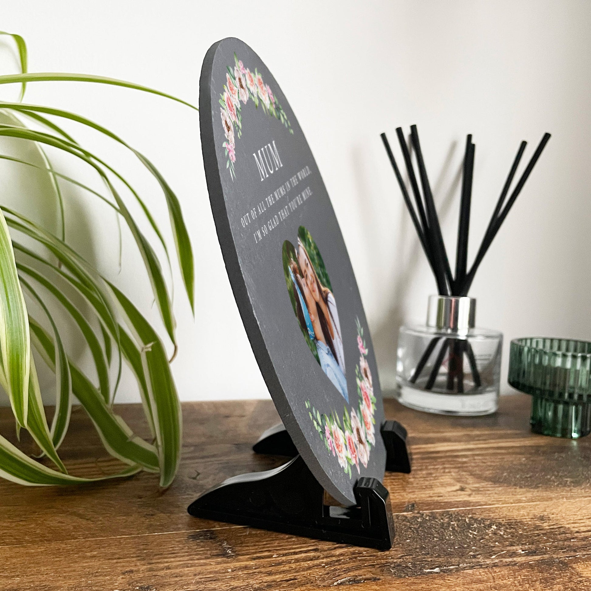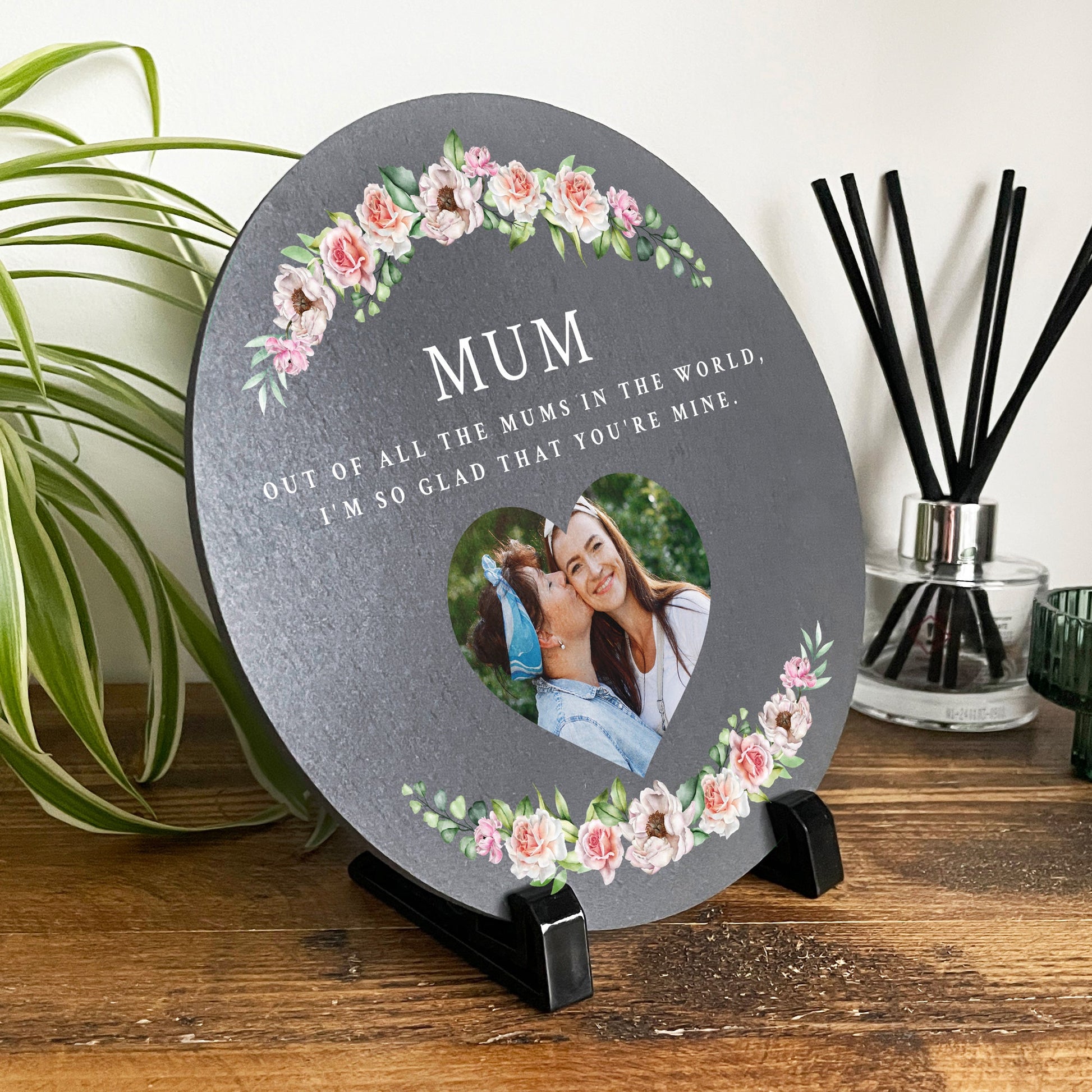 Looking for a special present for Mum or Grandma for her birthday or Mother's Day? This personalised photo slate, ready to display on a stand, will look beautiful in any home.