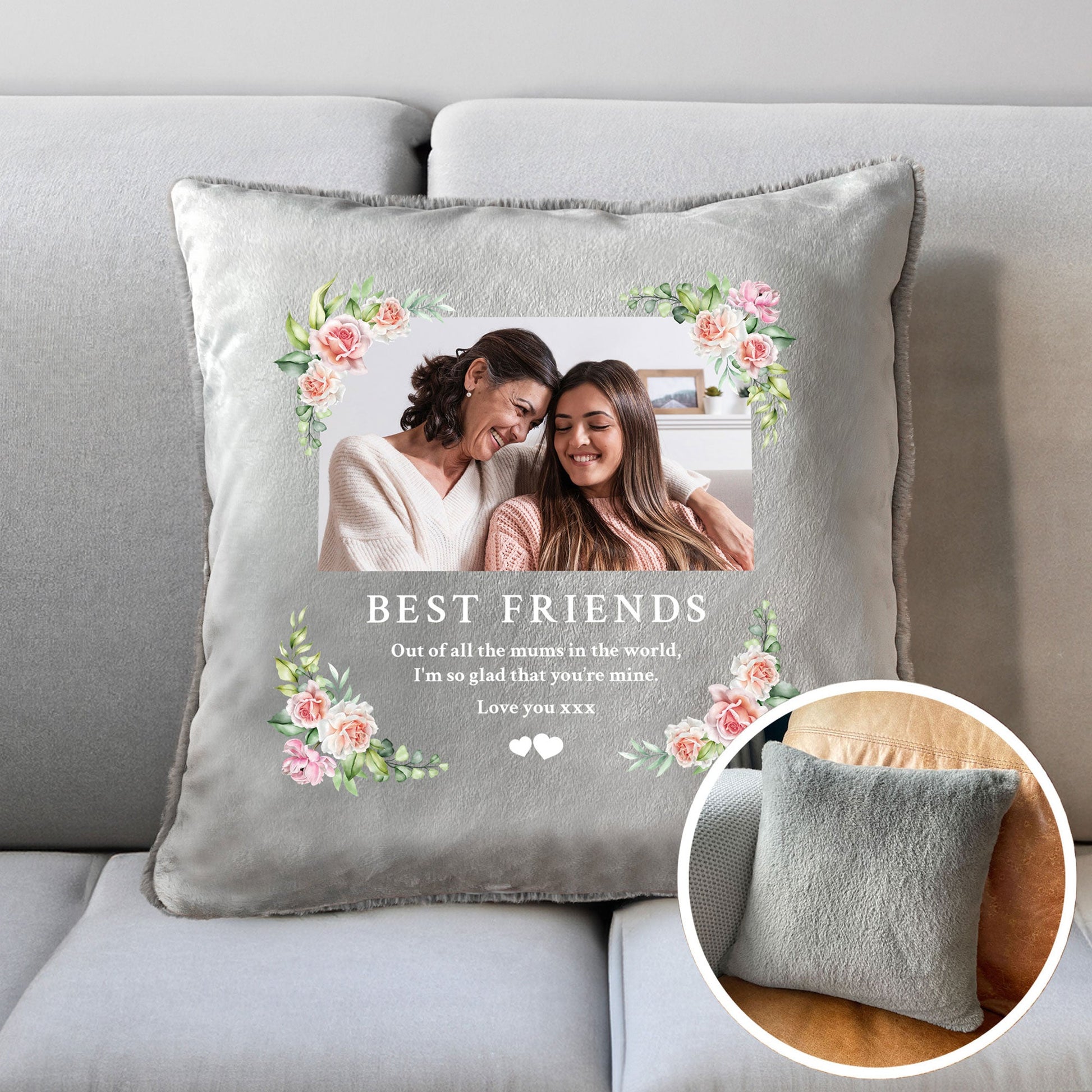 Treat Mum or Grandma to a special Mother's Day gift with this personalised photo cushion. Make it truly unique by adding any photo and wording. This charming gift is perfect for any occasion!
