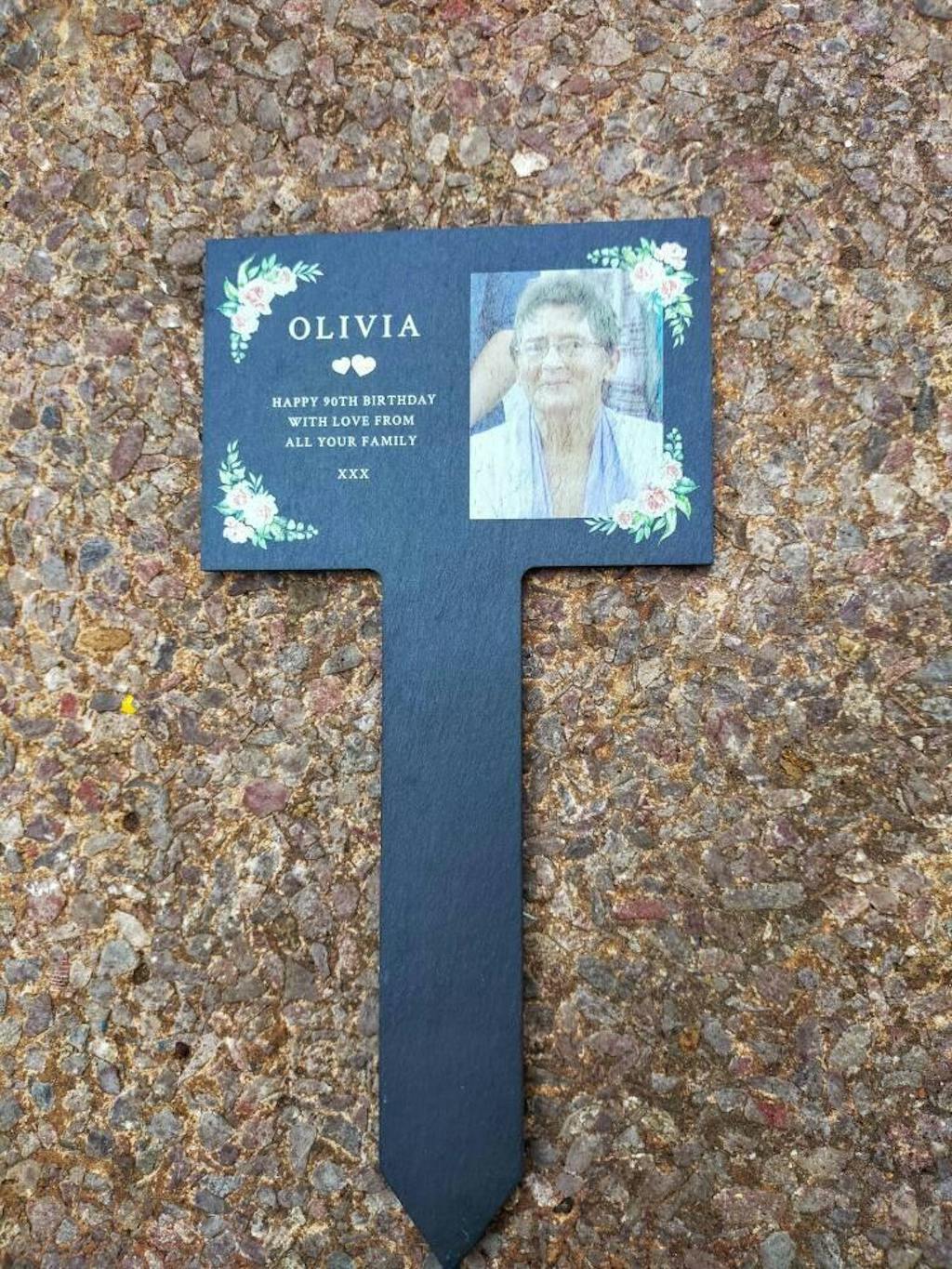 The strong slate garden marker has a 20cm stake to hold up the rectangular plaque.
