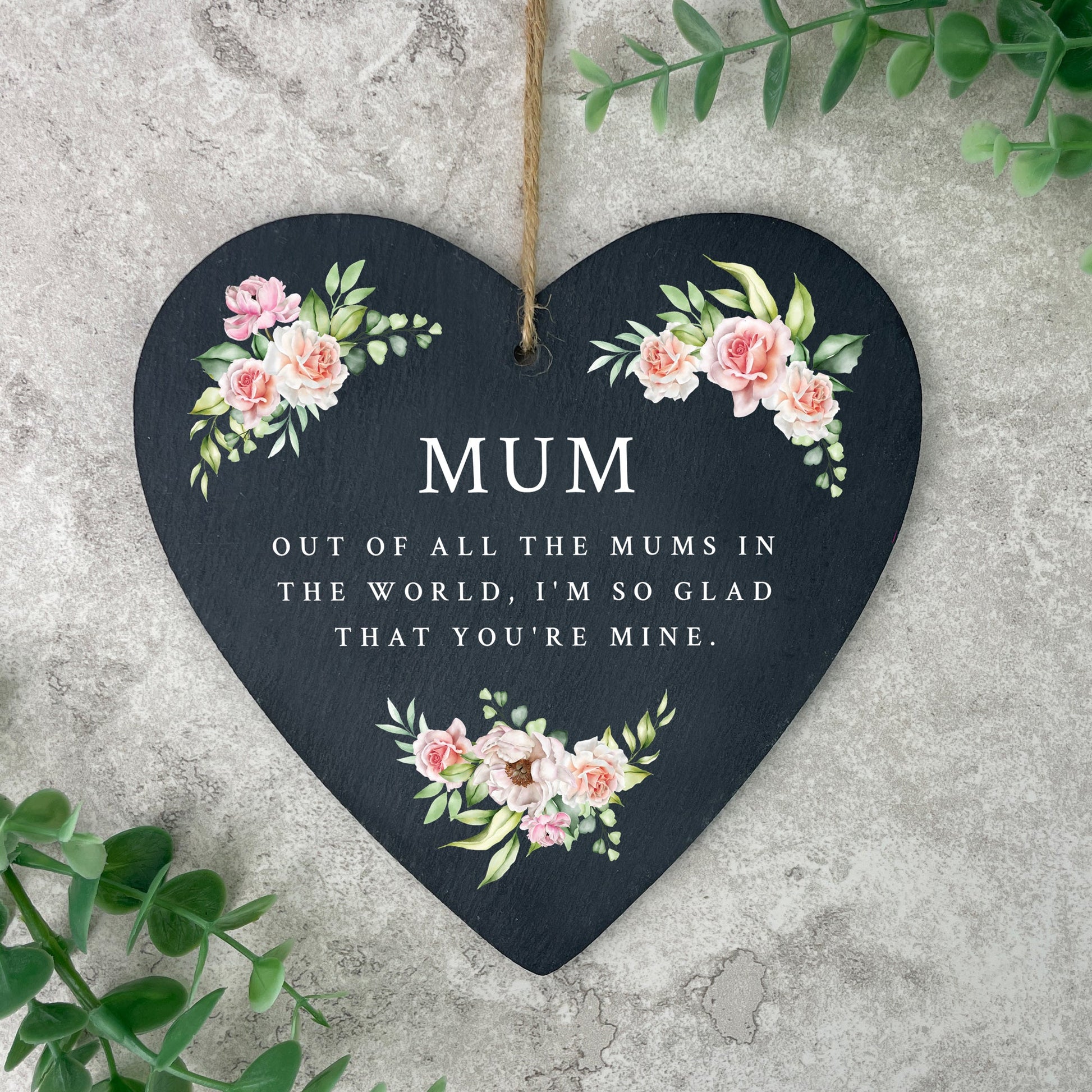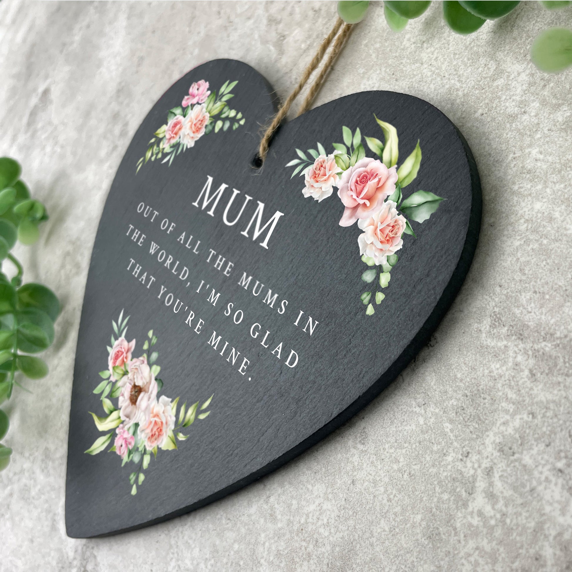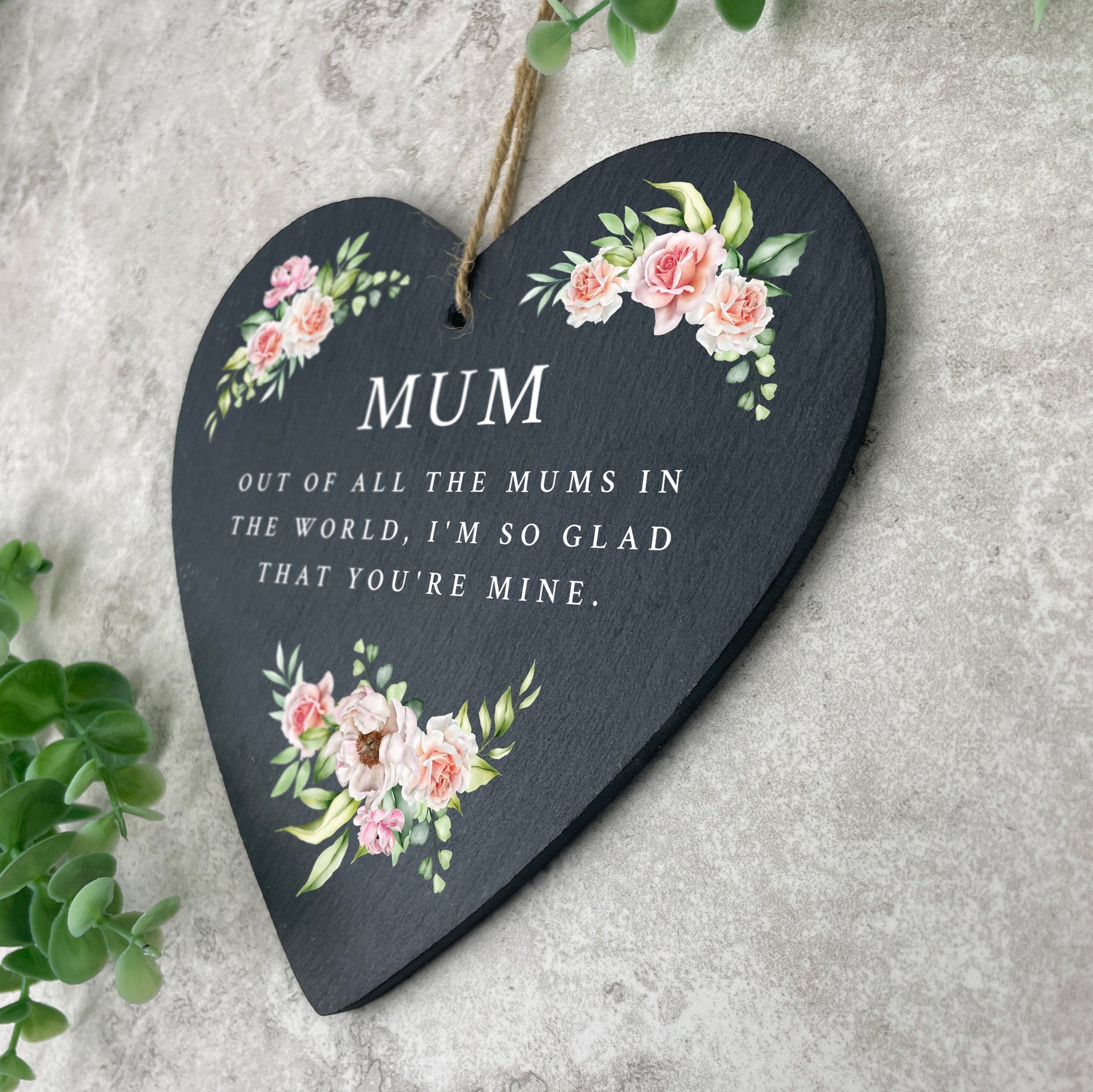 Show your love with this beautiful pink floral slate heart, a perfect present for Mum on Mother's Day, a birthday celebration, or a thoughtful gesture for a friend. It provides space for a heartfelt message, making it a treasured keepsake for years to come.