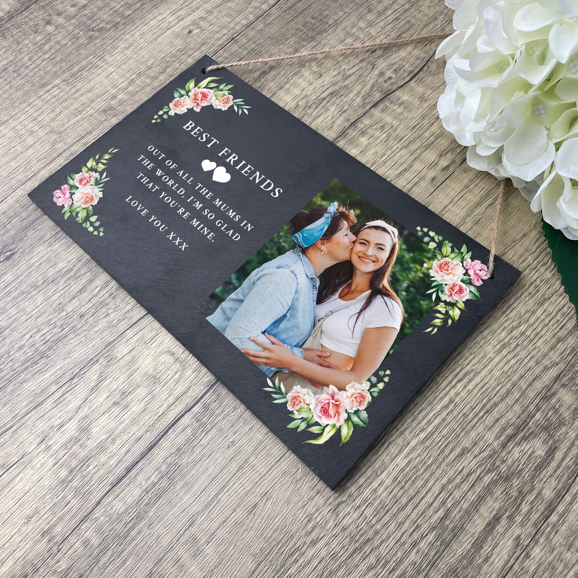 Looking for a meaningful present for Mum or Grandma this Mother's Day, or a friend's birthday? This custom photo slate hanging plaque will add a lovely touch to any room in her home. It features your cherished photo and a pretty pink floral design, and you can also include a heartfelt message of up to 5 lines.