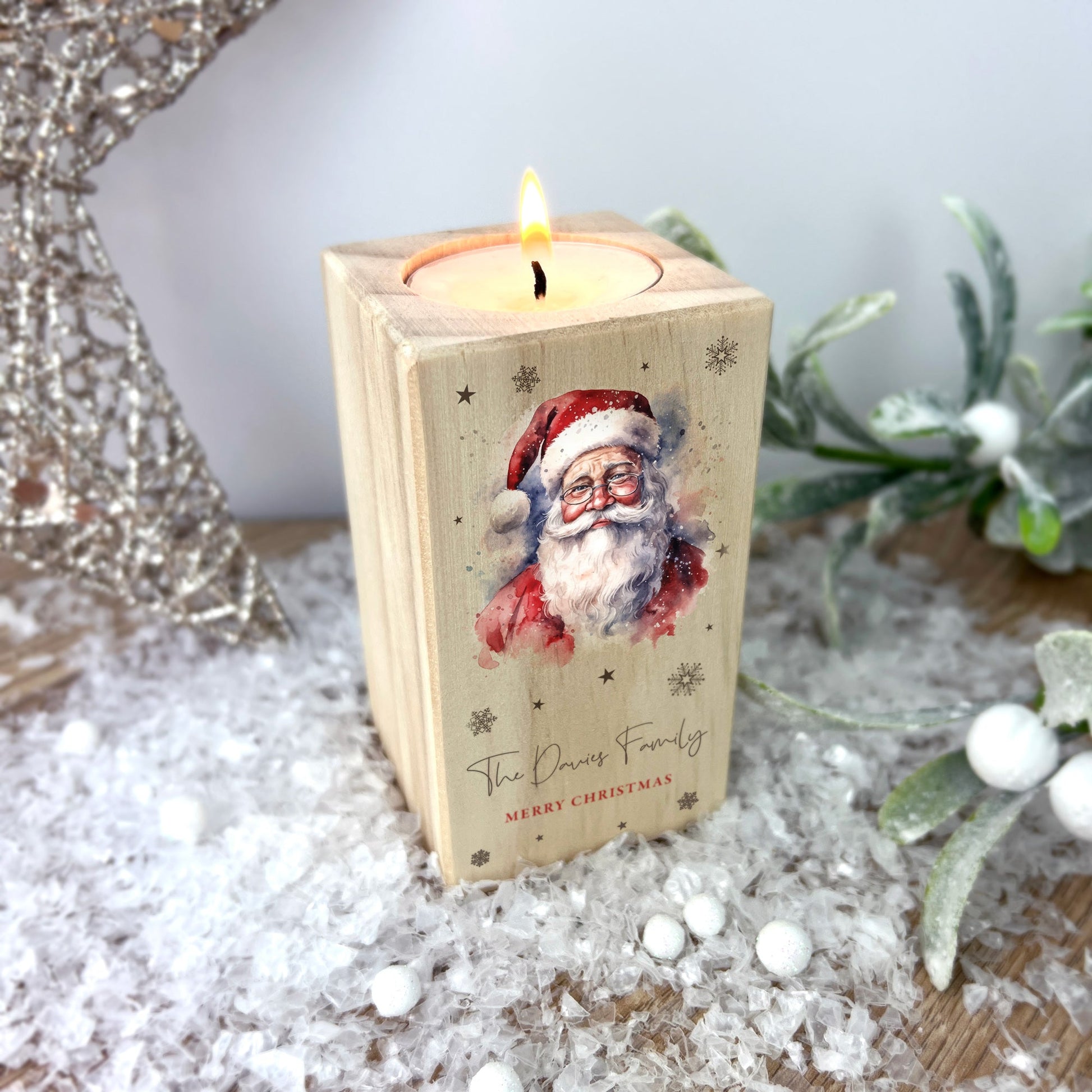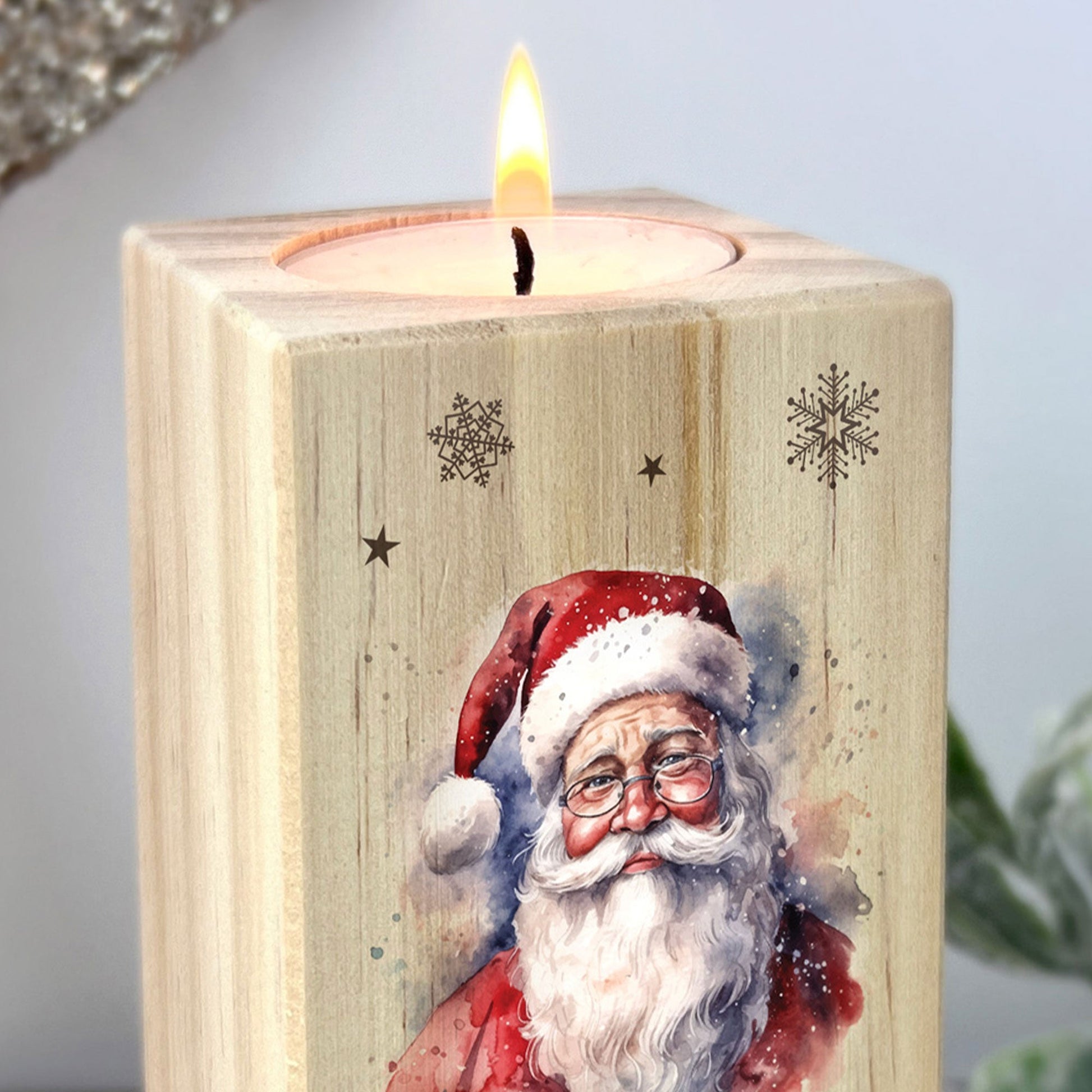 Personalised Any Message Traditional Santa Wooden Tea Light Holder - 2 Sizes