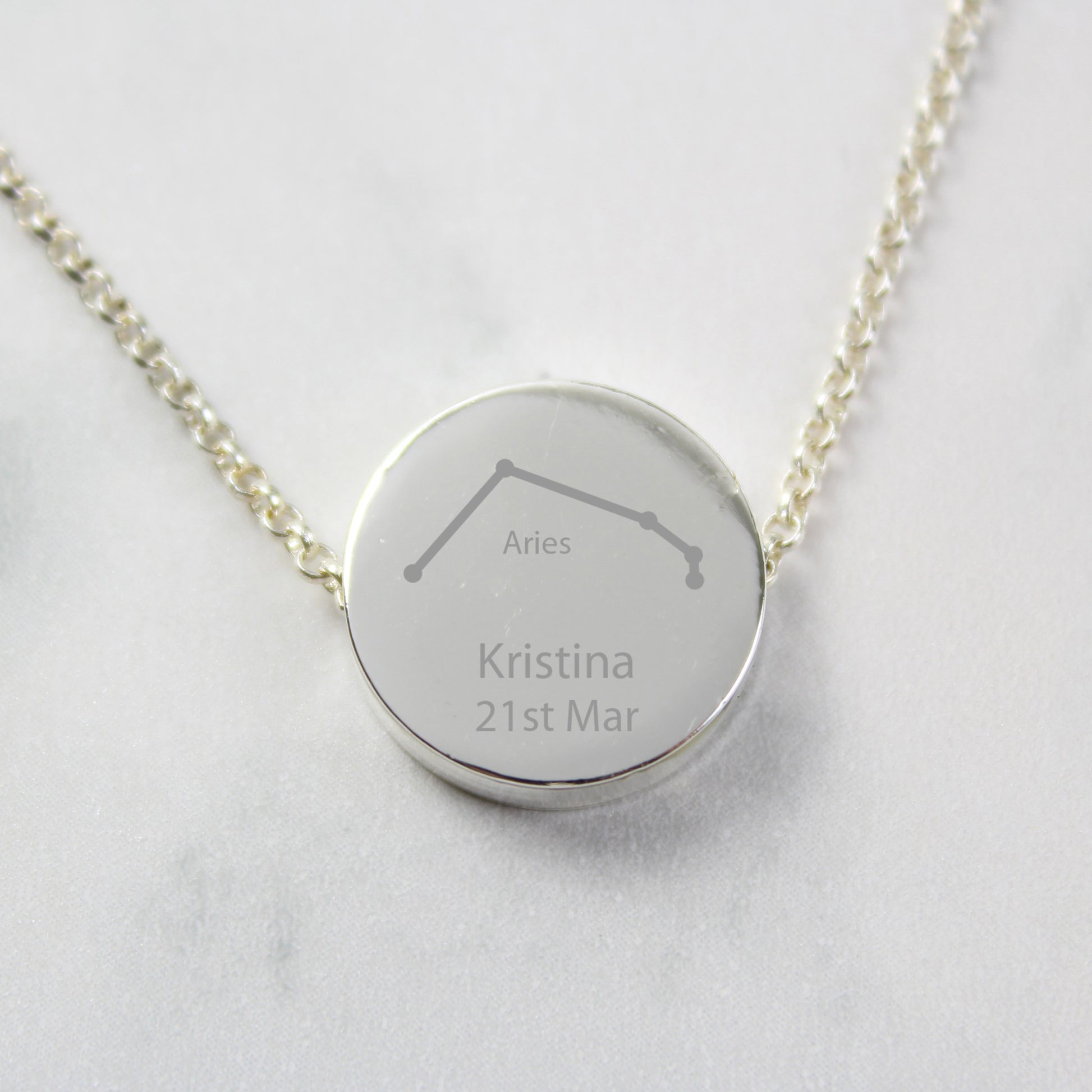 Personalised Aries Zodiac Star Sign Silver Tone Necklace (March 21st-April 19th)