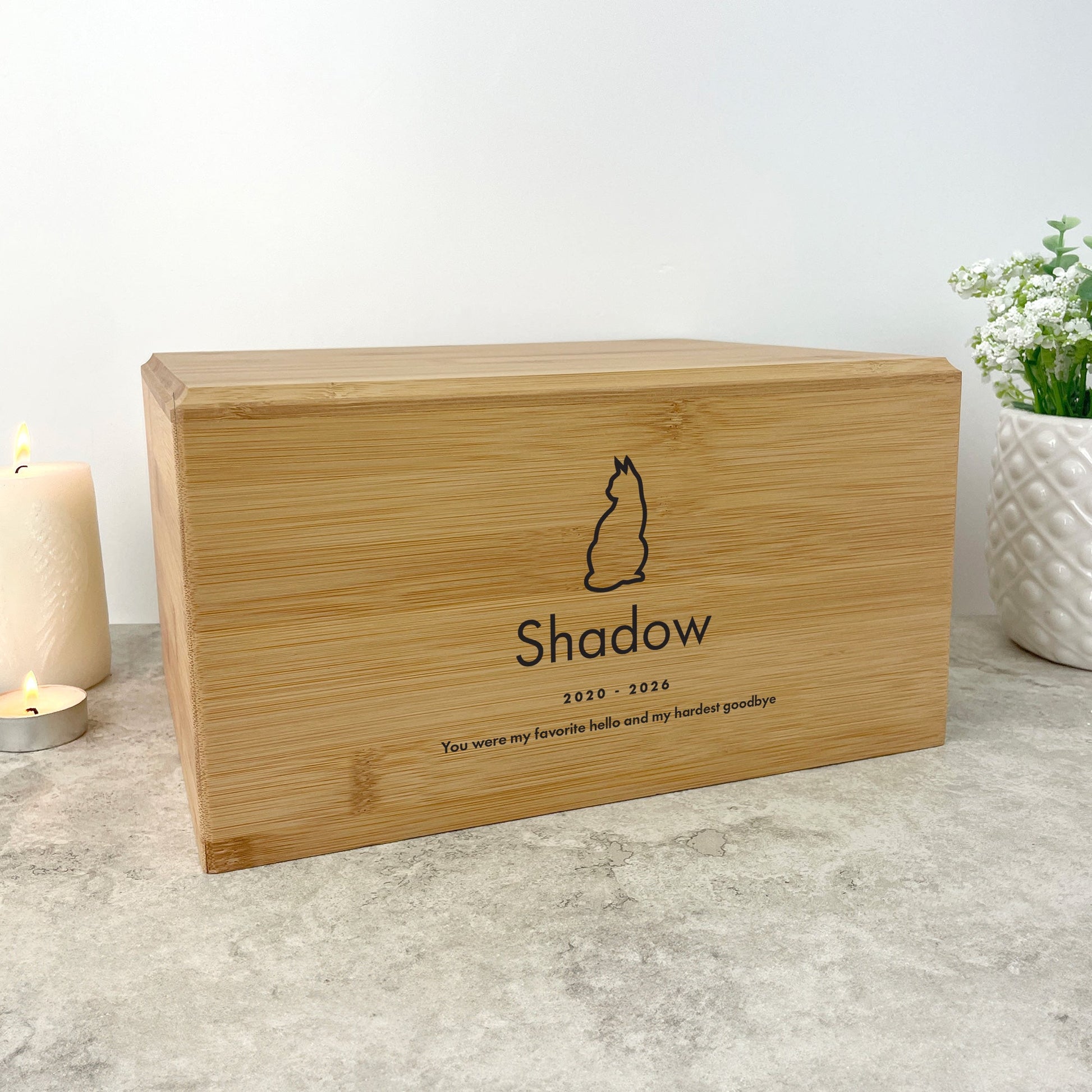Personalised Bamboo Urn For Pet Cremation Ashes - Dog/Cat Design