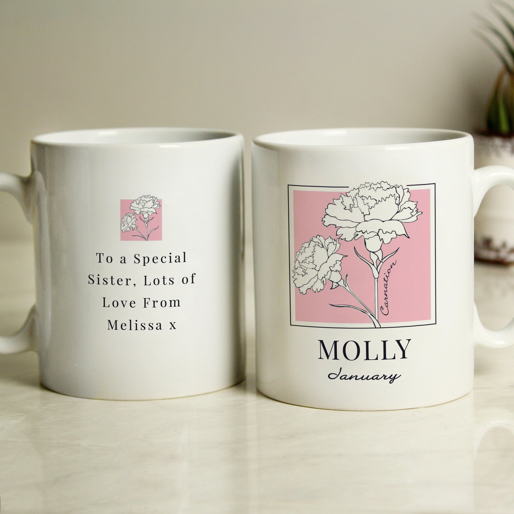 Featuring a colourful illustration of your chosen Birth flower to the front of the mug, you can make this gift extra special by also adding a name up to 12 characters and a message over 4 lines on the reverse, each containing up to 25 characters.