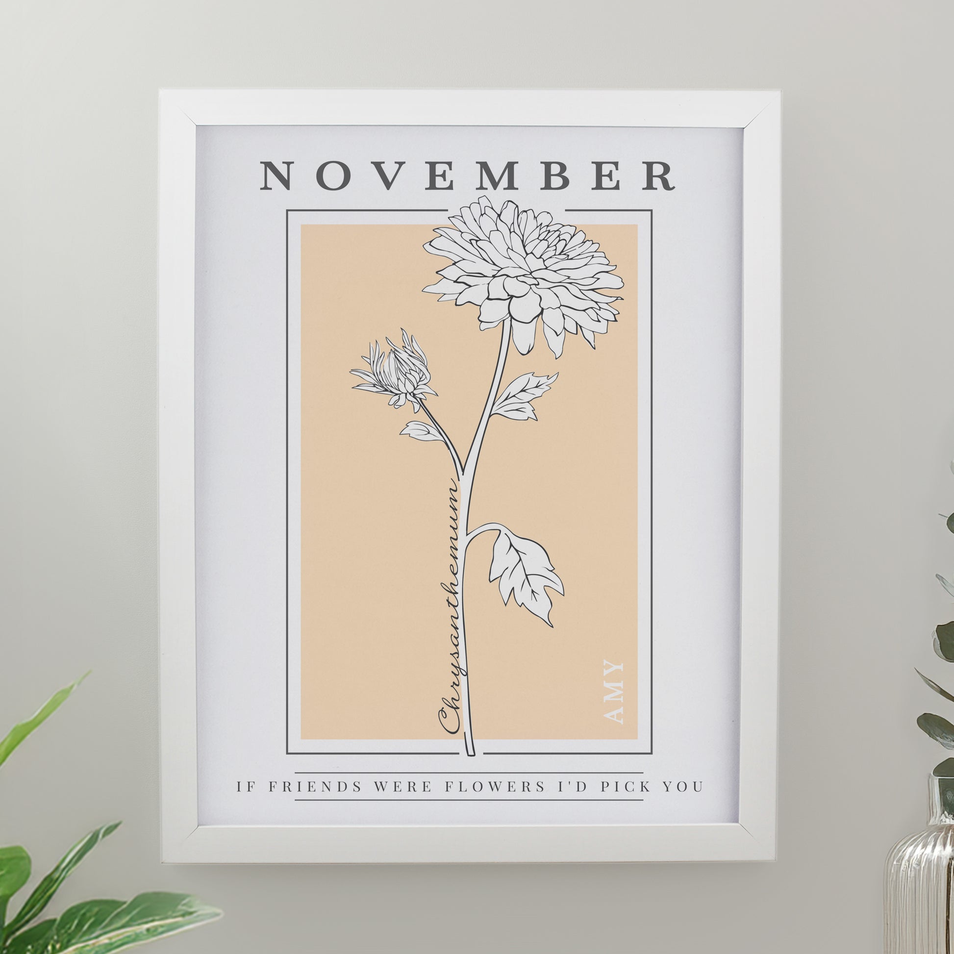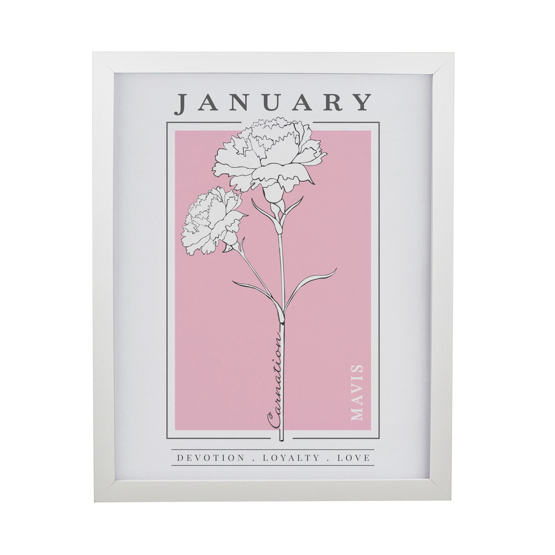 Please note, the name of the month and flower are fixed elements of the design and cannot be amended or removed