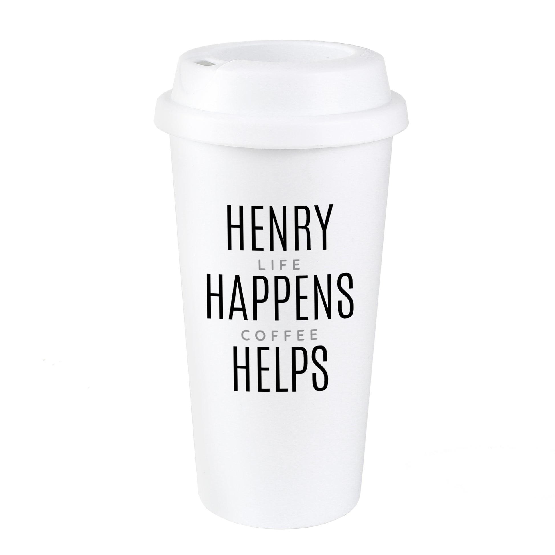 Personalised Black Text Slogan Insulated Reusable Eco Travel Cup