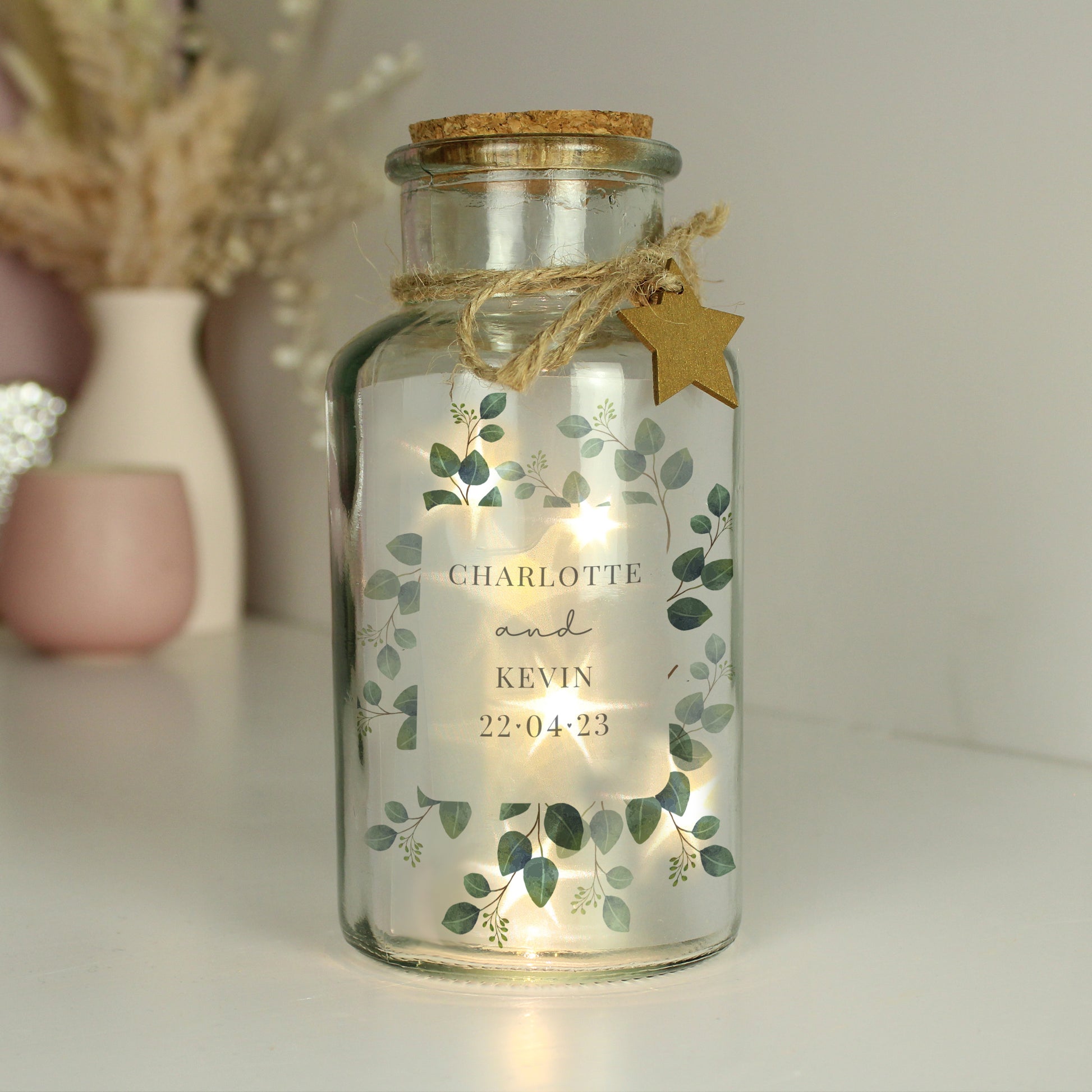 This beautiful Personalised Botanical LED Glass Jar is a perfect gift for the newlyweds!