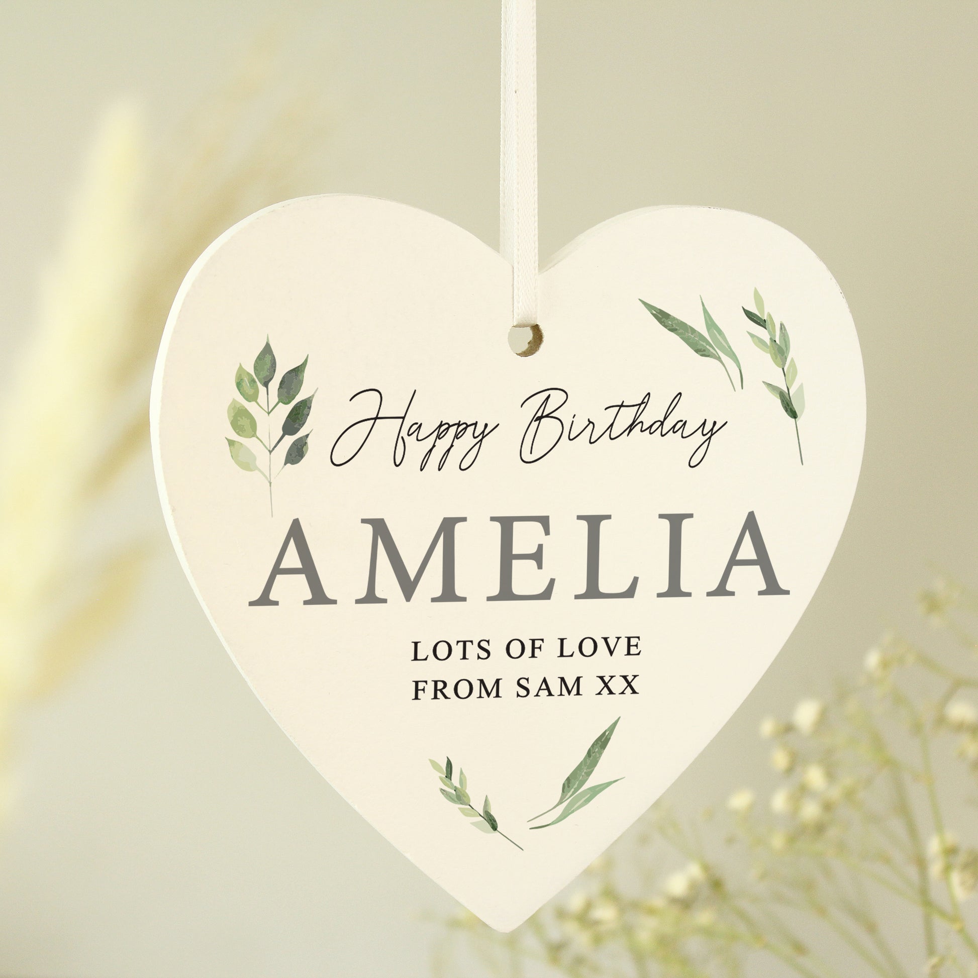 Personalised Botanical Script Wooden Heart Decoration