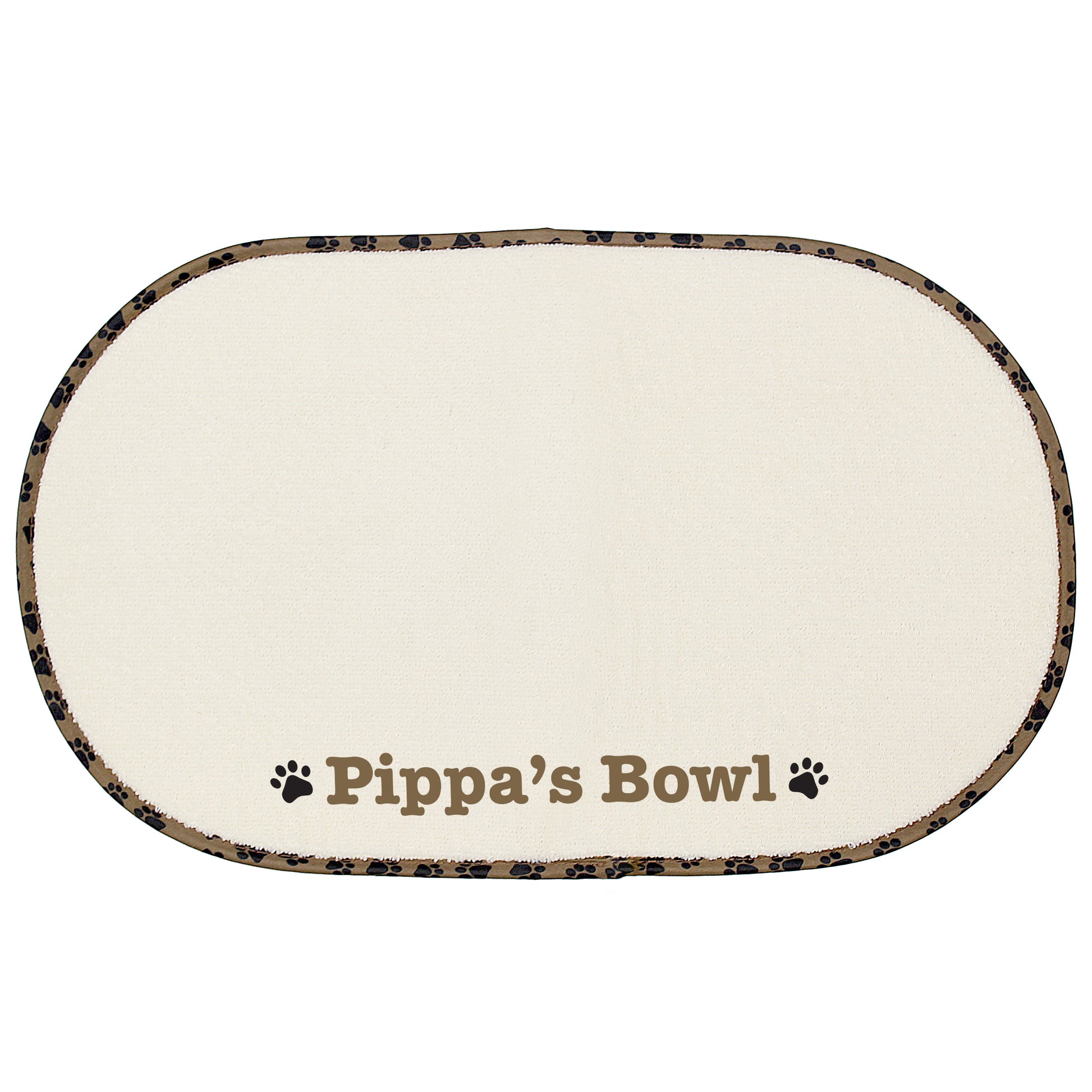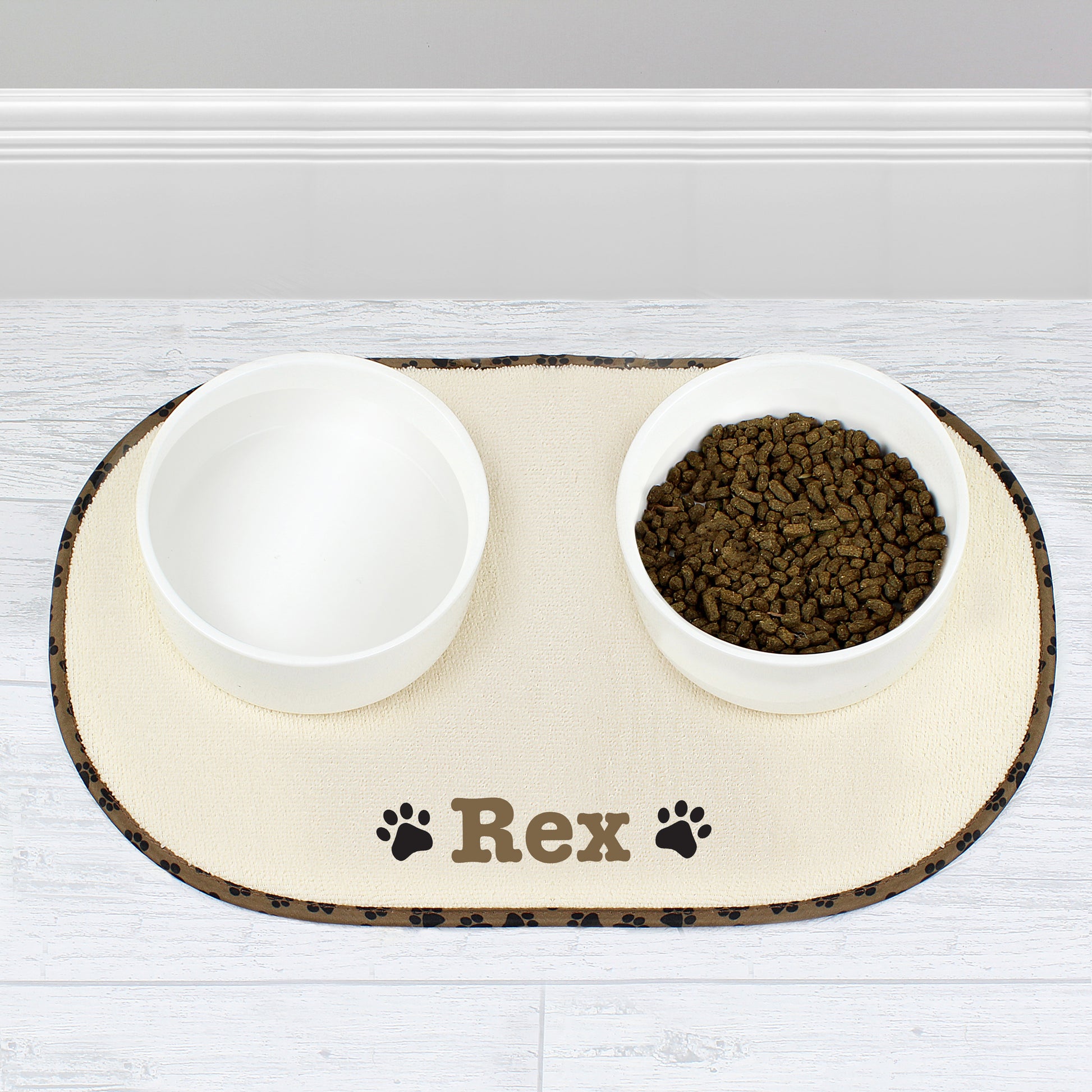 Personalised Brown Microfibre Paw Print Pet Bowl Mat