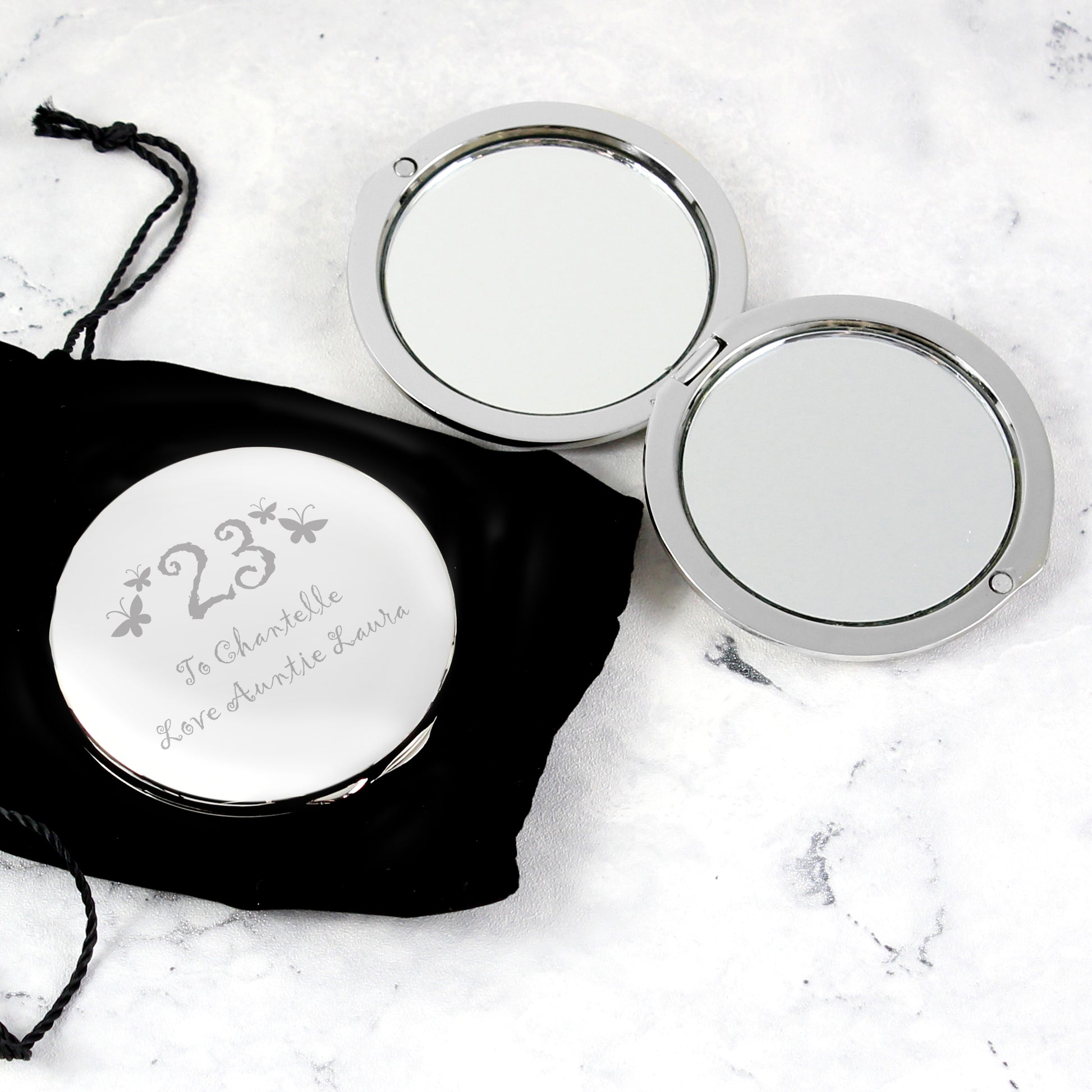 Personalised Butterfly Age Round Compact Mirror