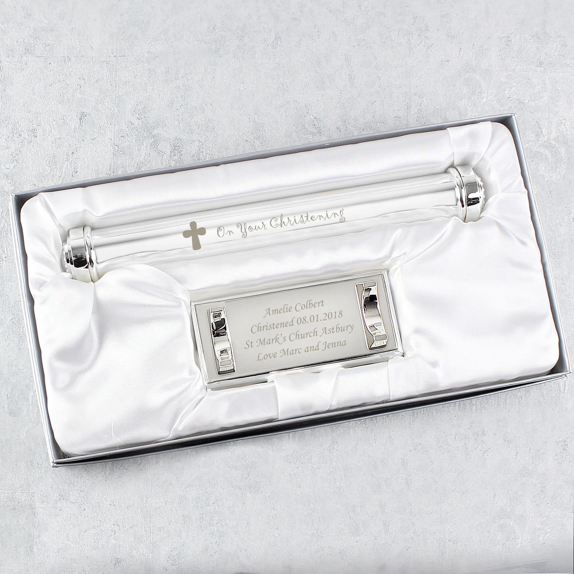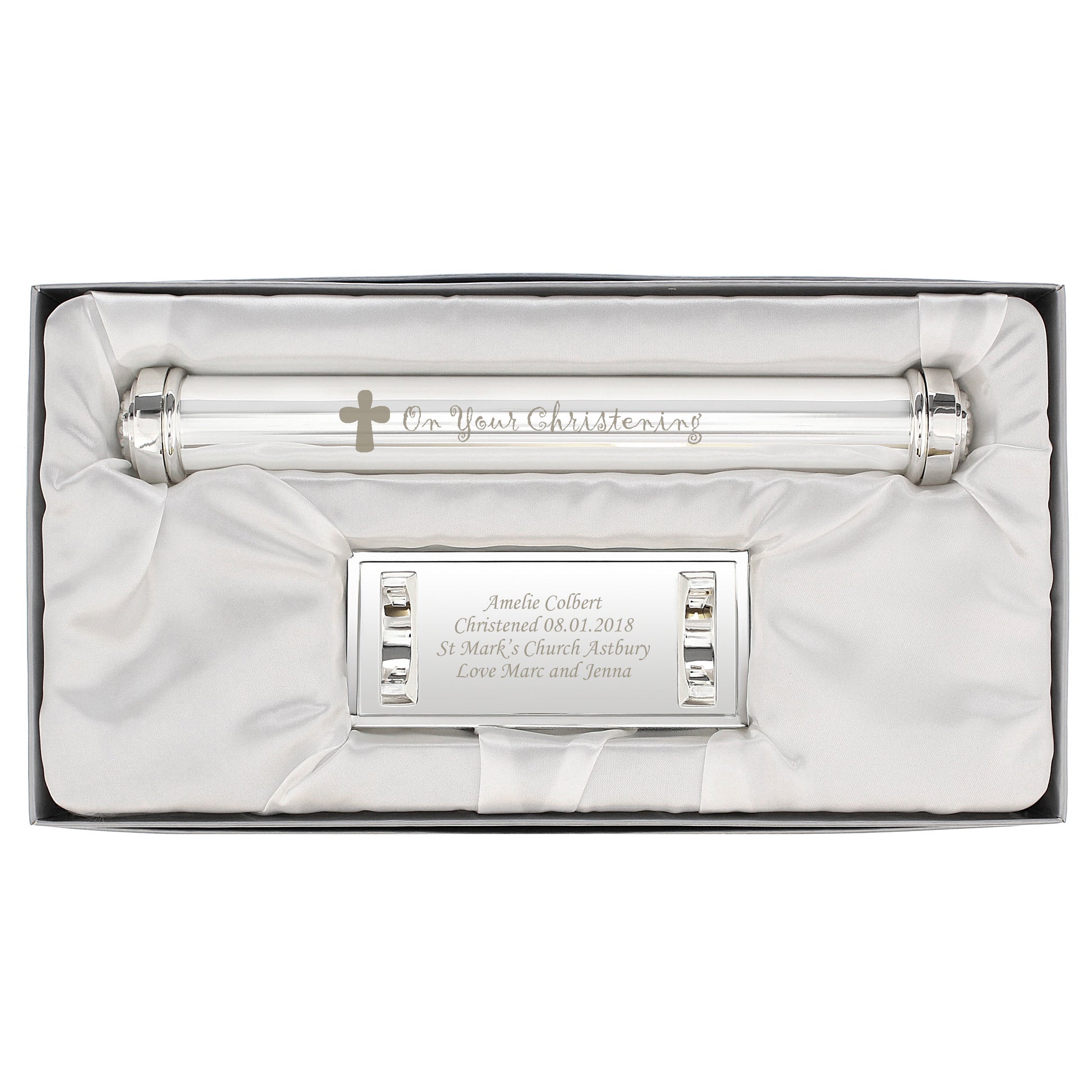 Personalised Christening Cross Silver Plated Certificate Holder