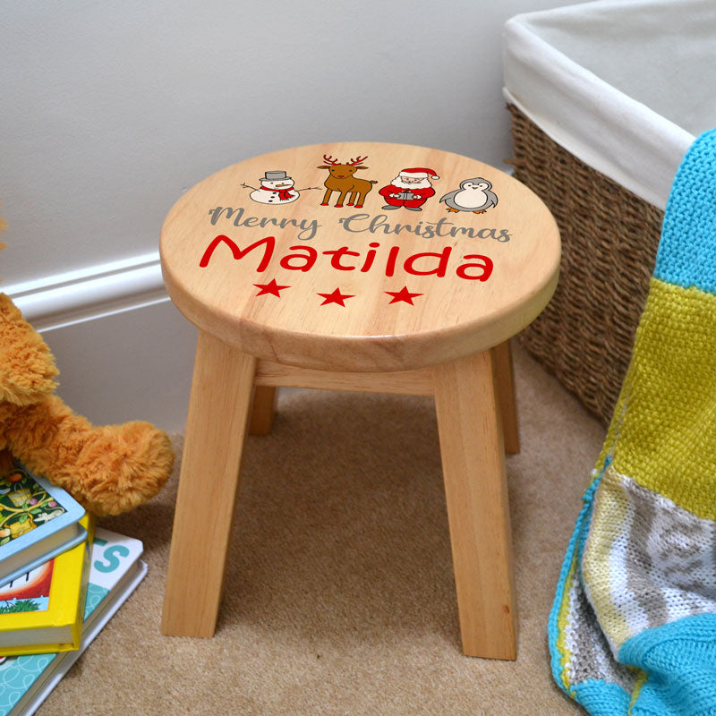 Personalised Christmas Stool with Santa Snowman Penguin and Reindeer