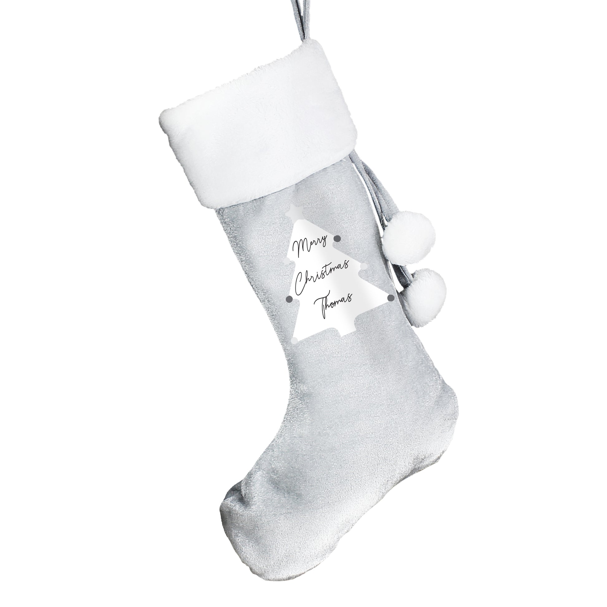 Personalised Christmas Tree Luxury Silver Grey Stocking