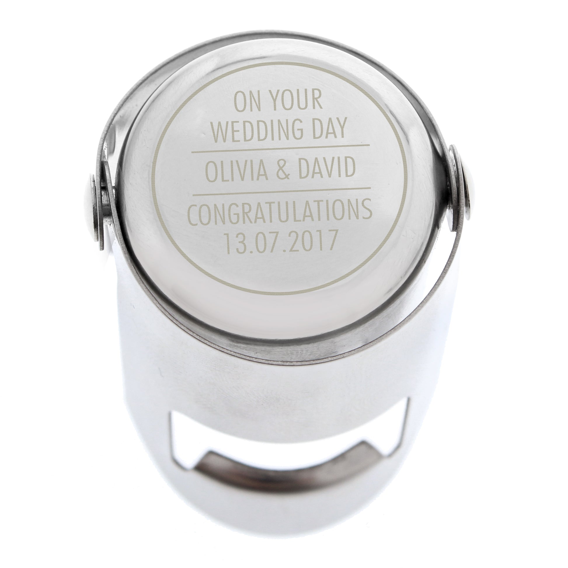 Our personalised 'Any Message' Stainless Steel Bottle Stopper ensures the airtight closure of champagne bottles and wine bottles that use corks. Works equally well on Prosecco, Champagne and sparking wine. It's perfect as a unique and thoughtful gift for any celebration.
