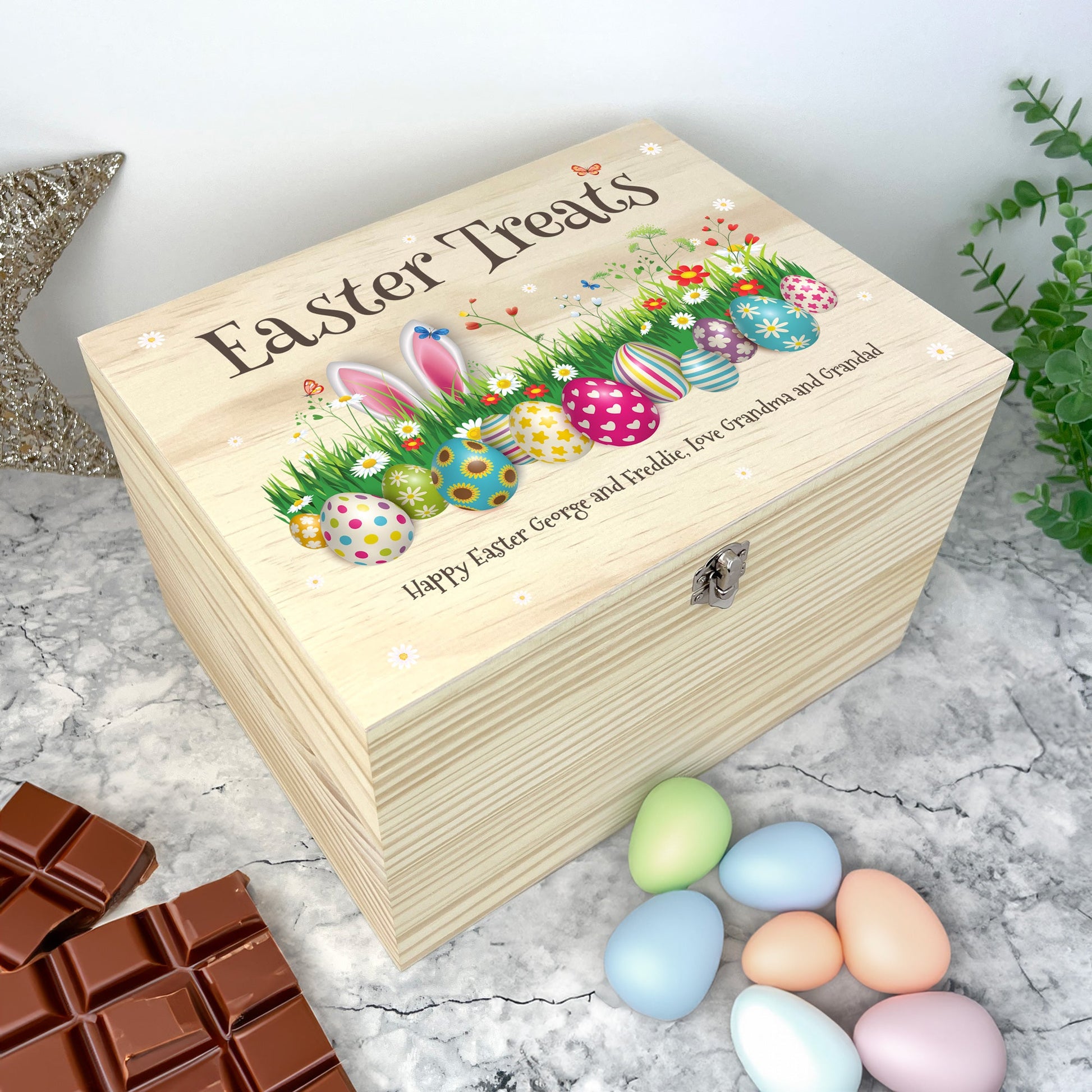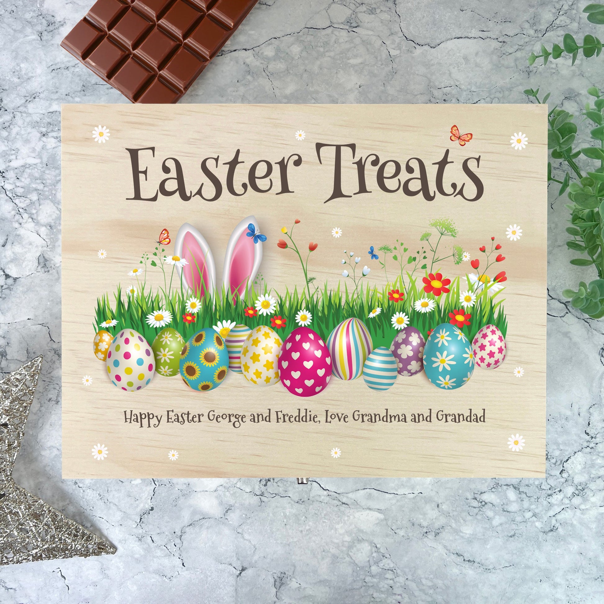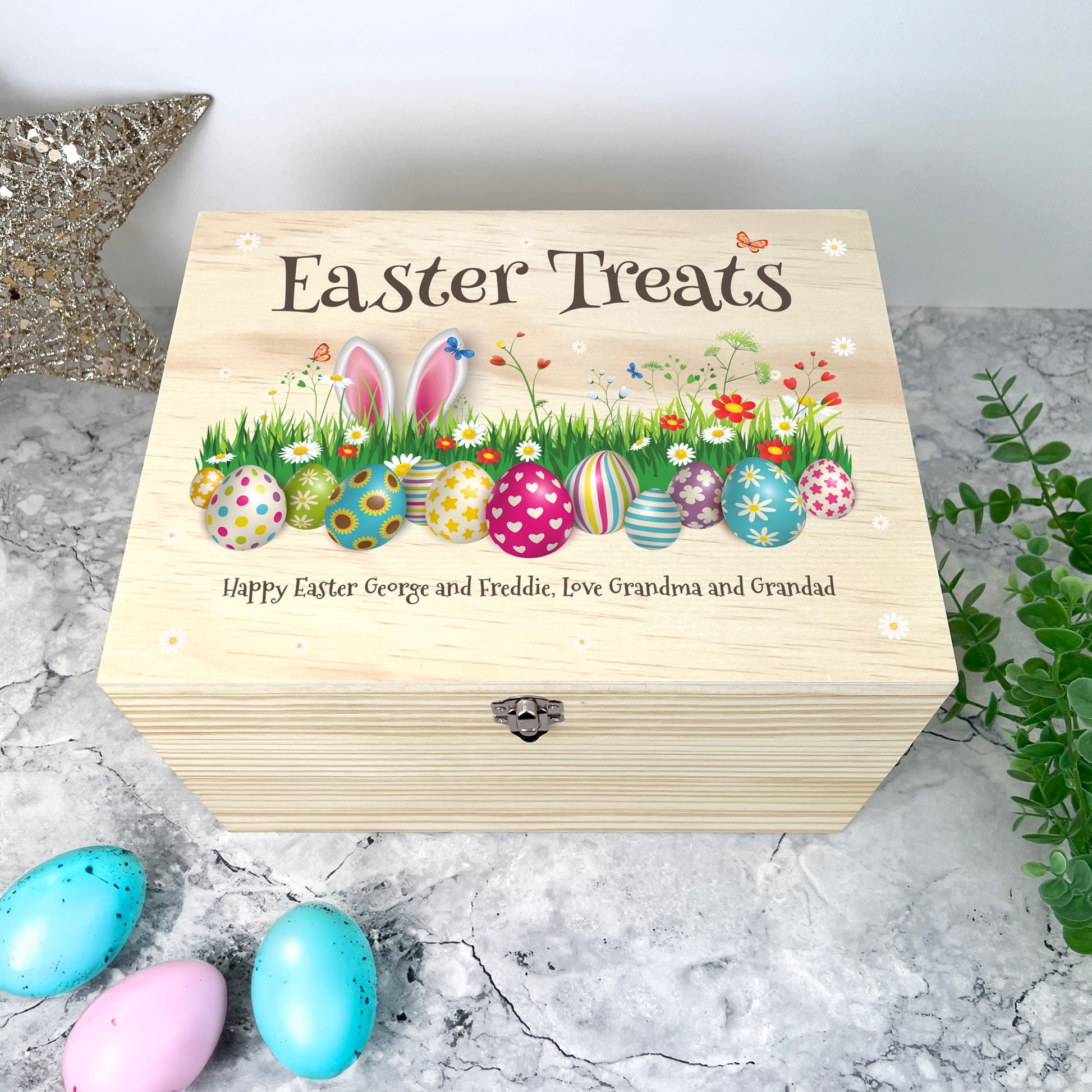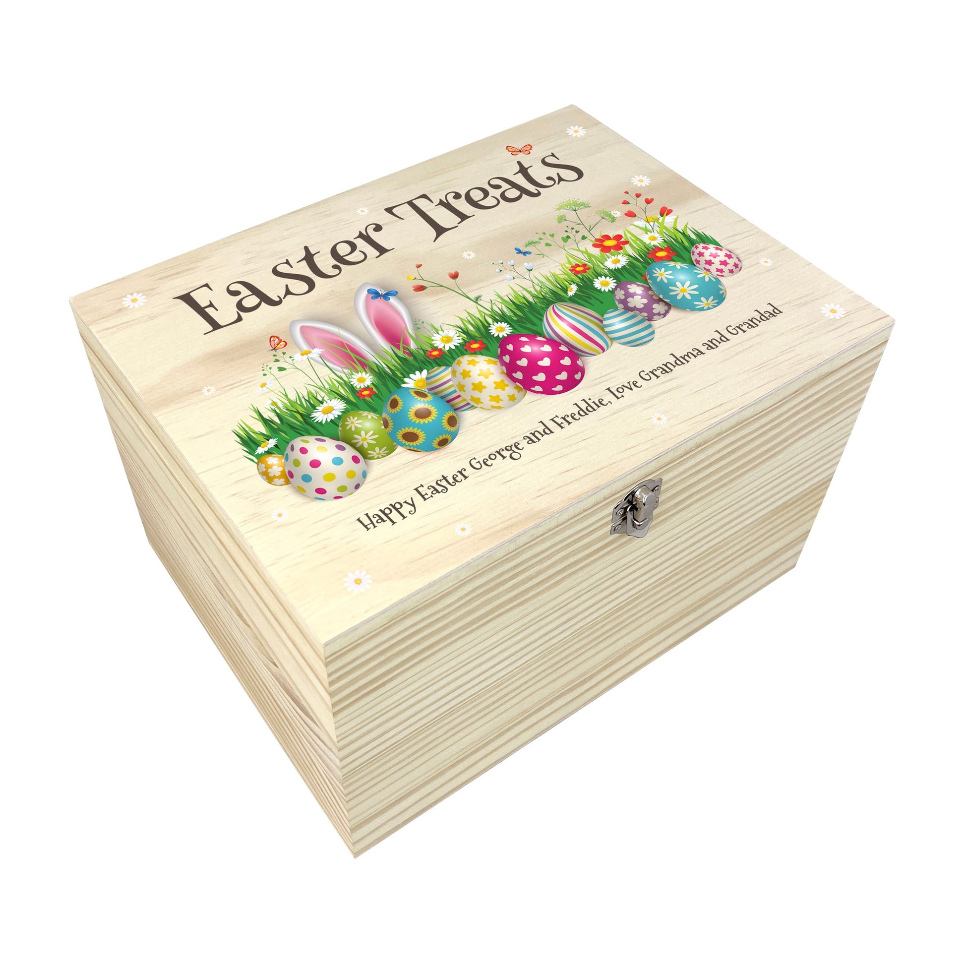 Personalised Colourful Easter Wooden Hamper Box - 5 Sizes (16cm | 20cm | 26cm | 30cm | 36cm)