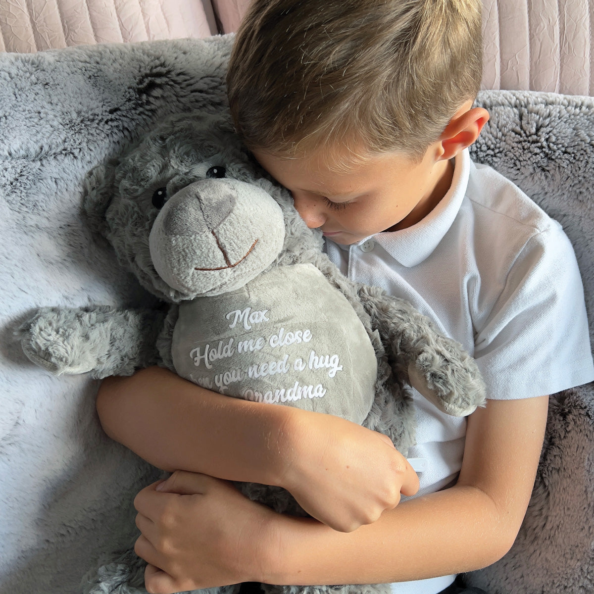 Personalised Message 'Comfort Bear' - Grey, Pink, Blue or Cream