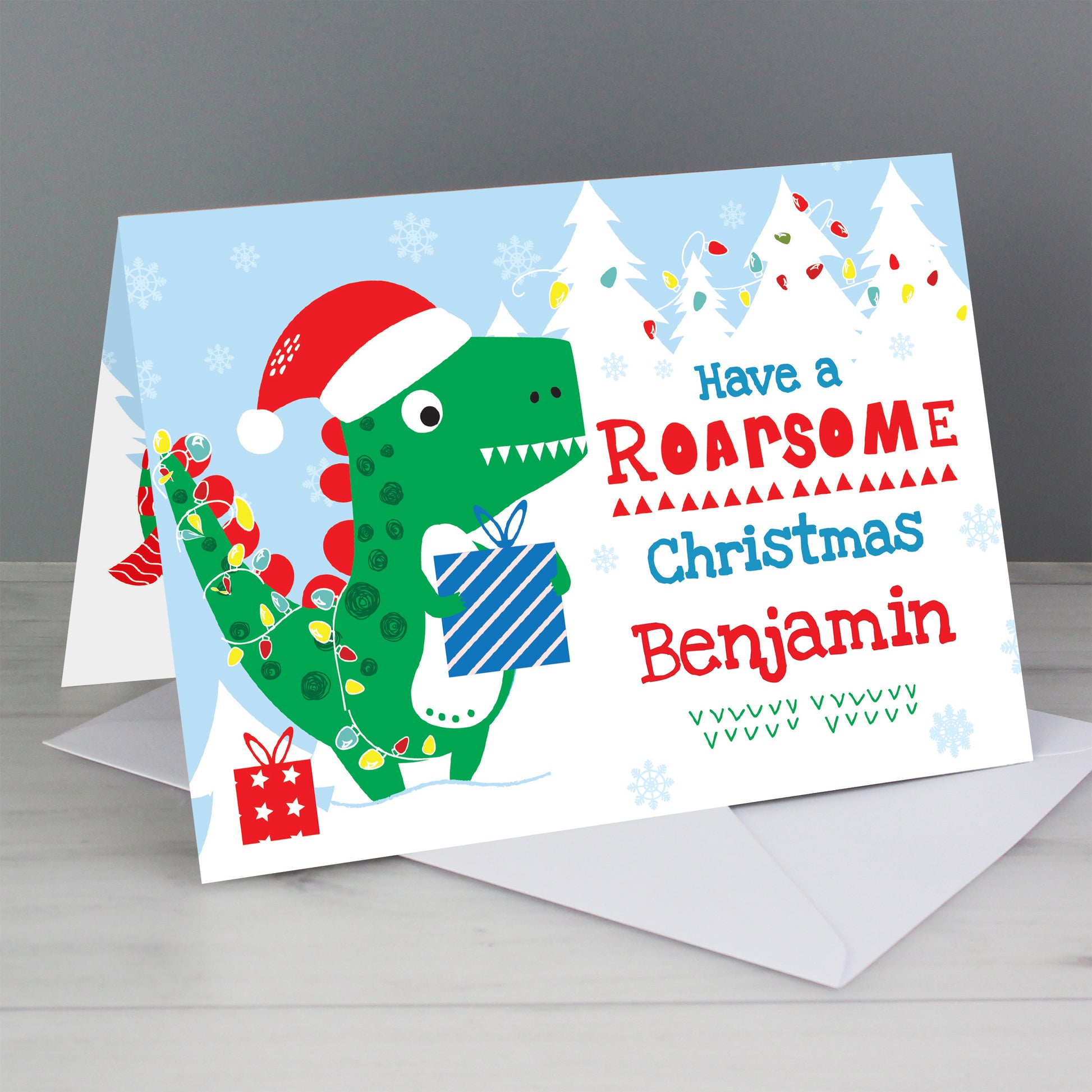 Personalised Dinosaur 'Have a Roarsome Christmas' Card
