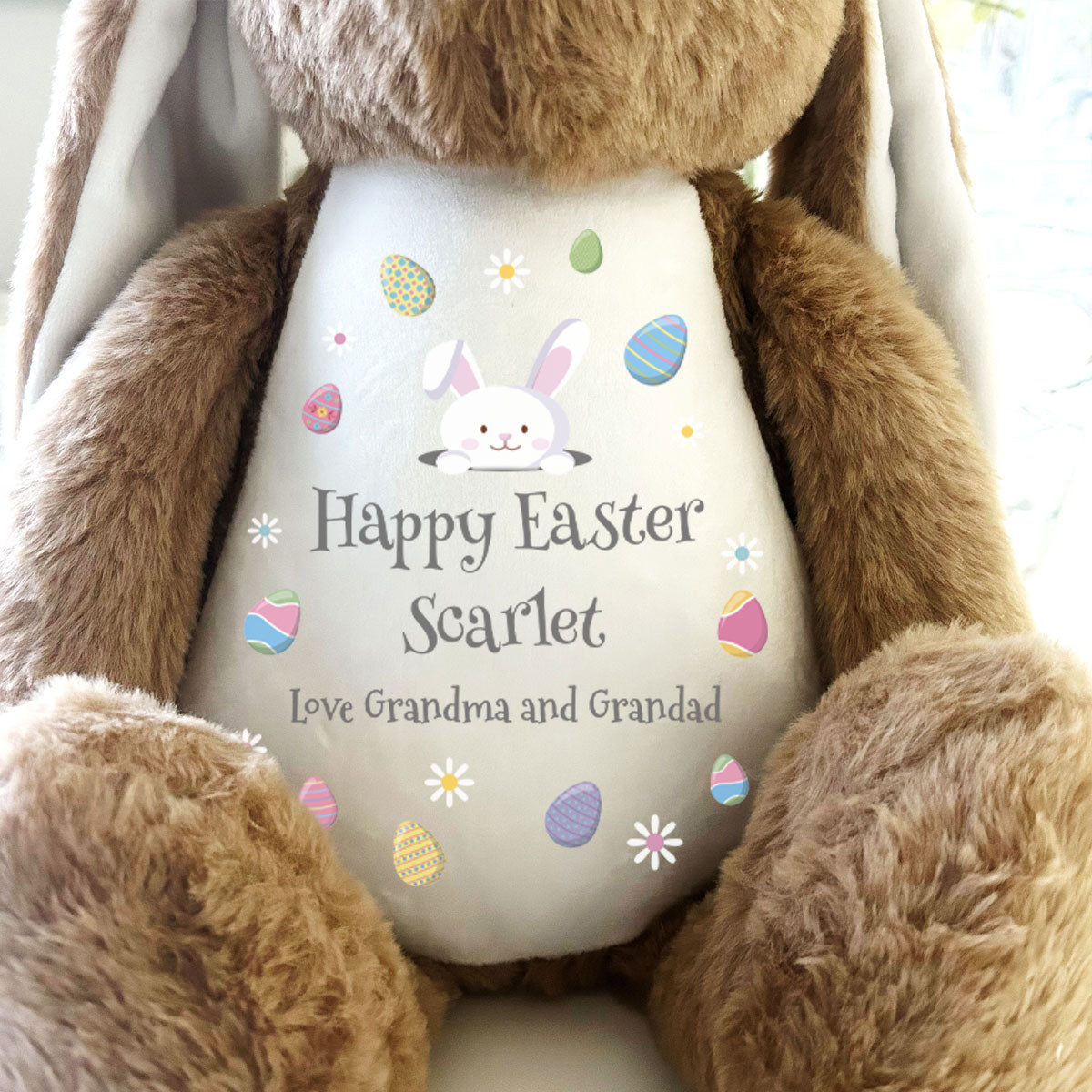Give a delightful Easter treat beyond the ordinary with our personalised bunny! Crafted from the snuggliest plush and customisable with 3 lines of text, it's the cutest Easter gift for your kid or grandchild.