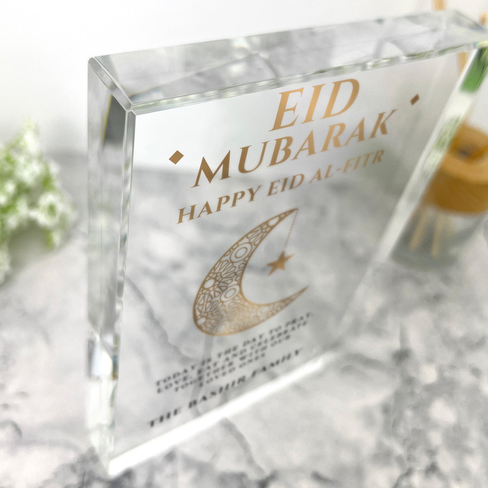 Personalised Eid al-Fitr Crescent Giant Crystal Block (19.5cm x 14cm)