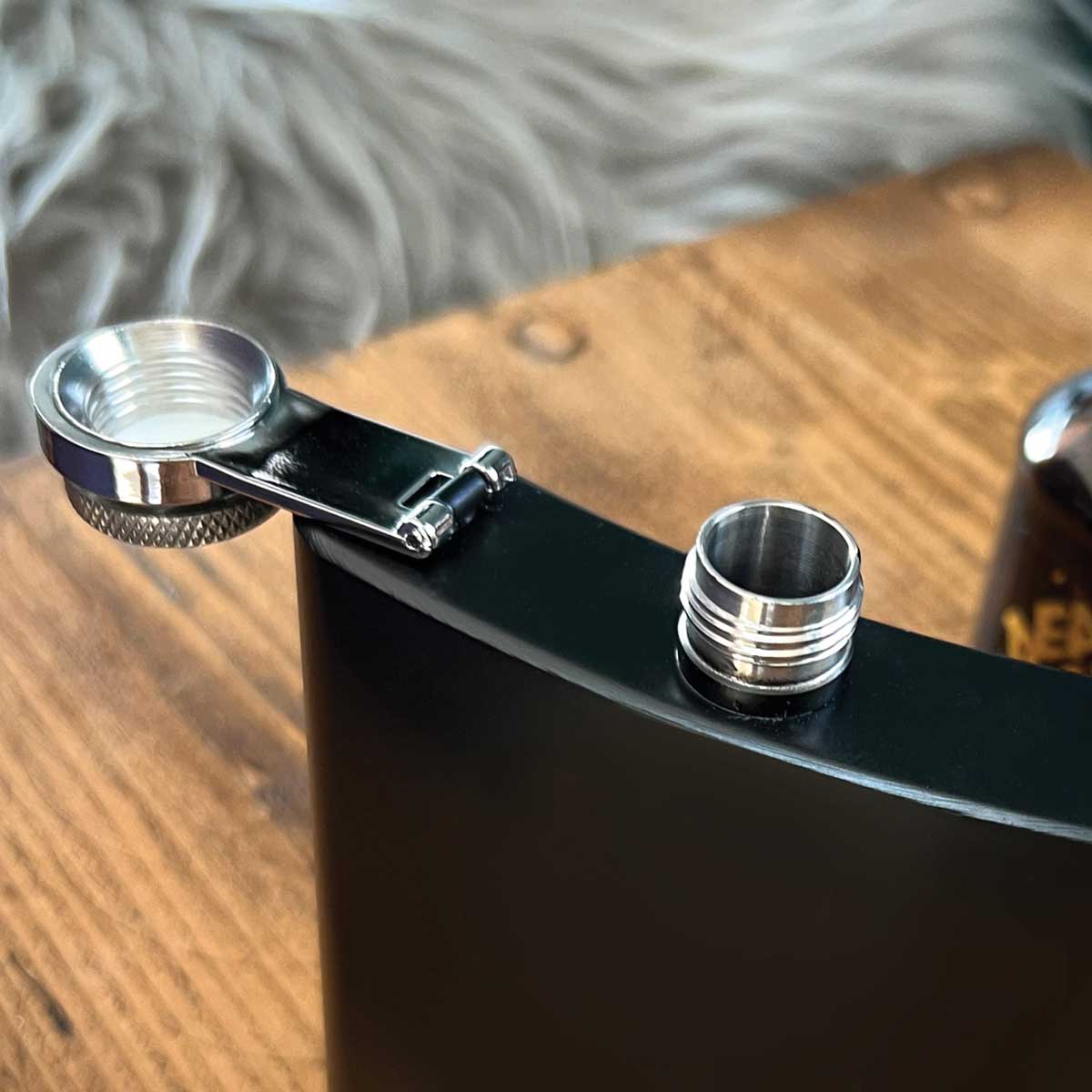 Choose for the Hip Flask to arrive on its own in a white card box or you can upgrade your gift to include a funnel and a luxury silk lined presentation box or metal gift tin.