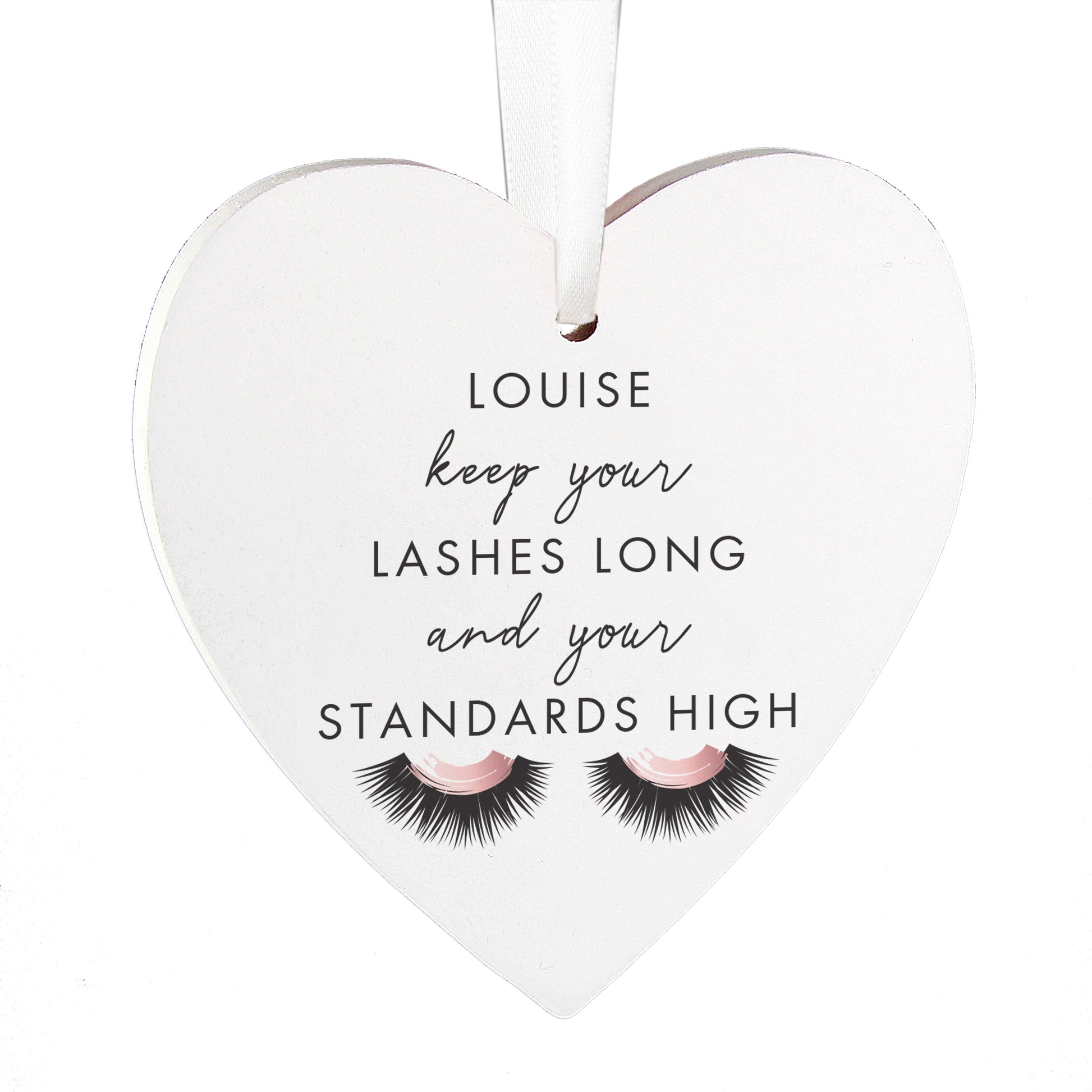 Personalised Eyelash Wooden Heart Decoration