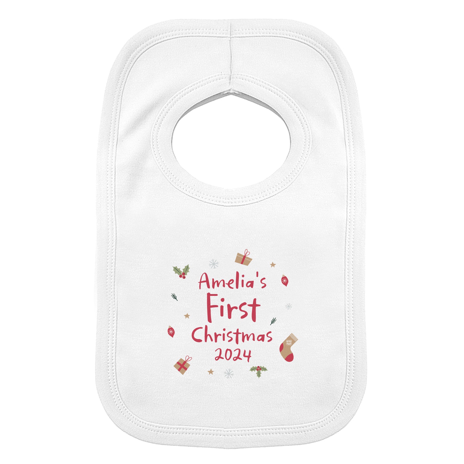 This adorable Personalised First Christmas Bib is perfect for celebrating baby's magical first Christmas.