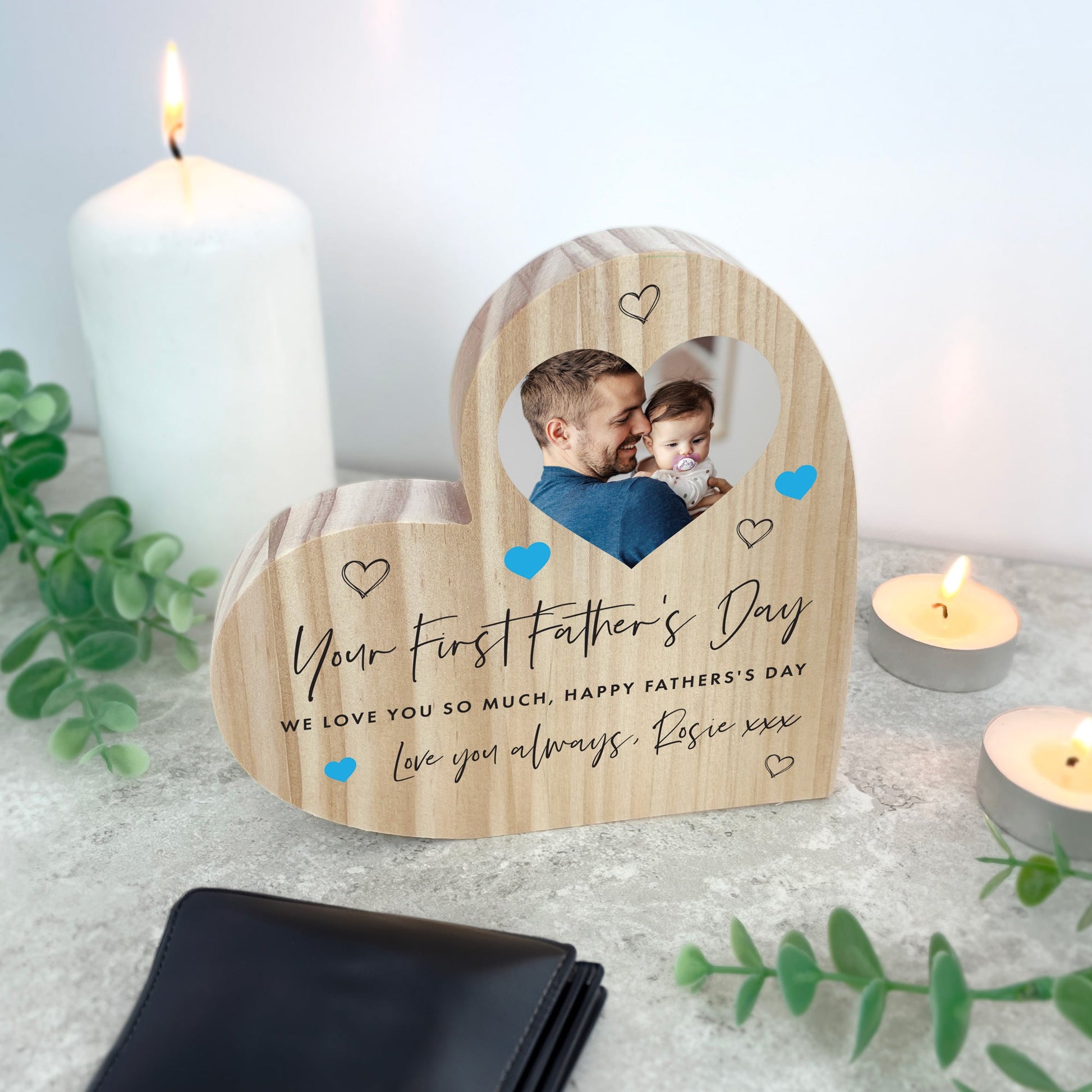 Looking for a truly special way to celebrate his first Father's Day? Let us help you create a personalised keepsake with space for a photo and three heartfelt lines. This unique gift will be cherished for years to come. Our assistance will make this day unforgettable.