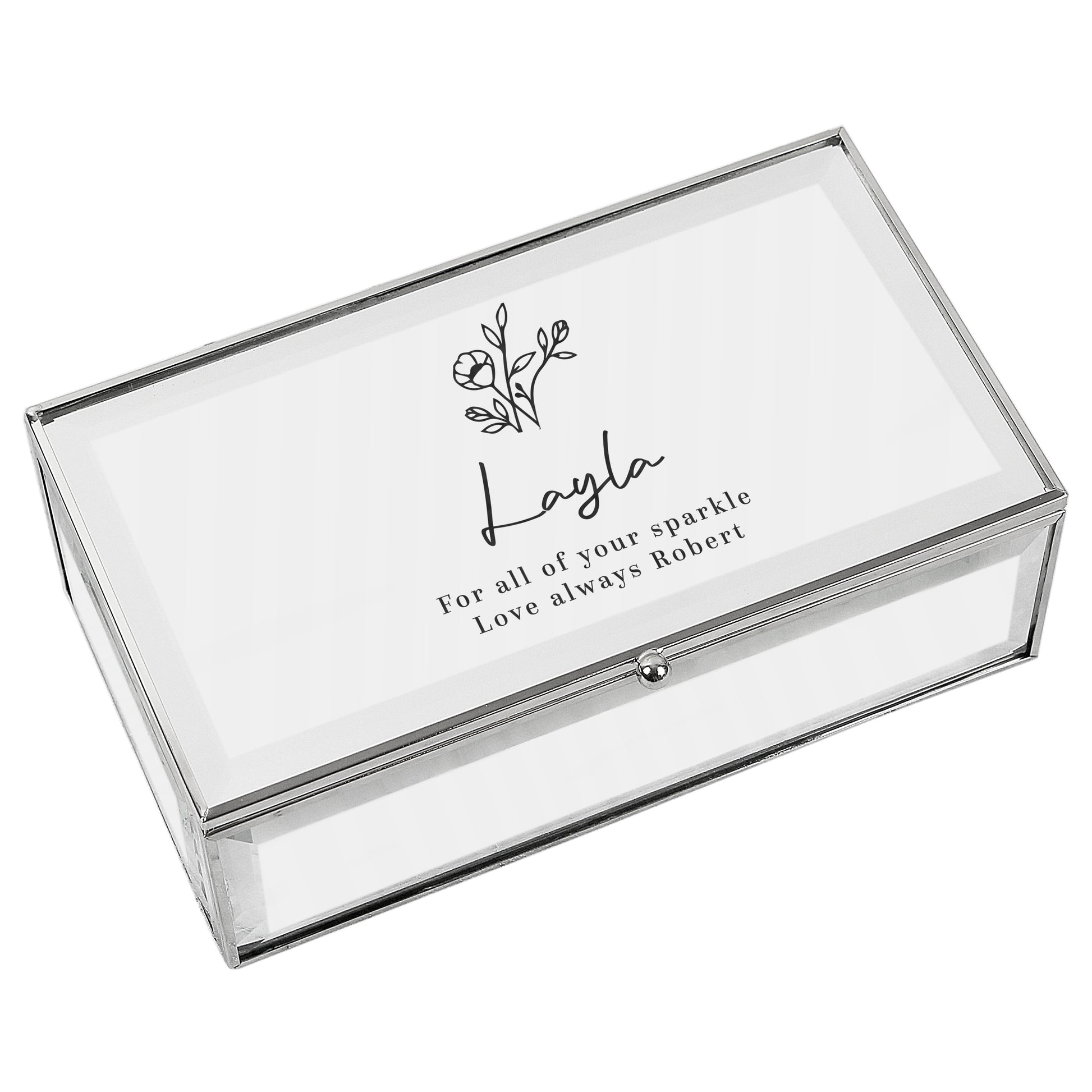 Personalise this stunning jewellery box with 1 line of text, up to 12 characters long.