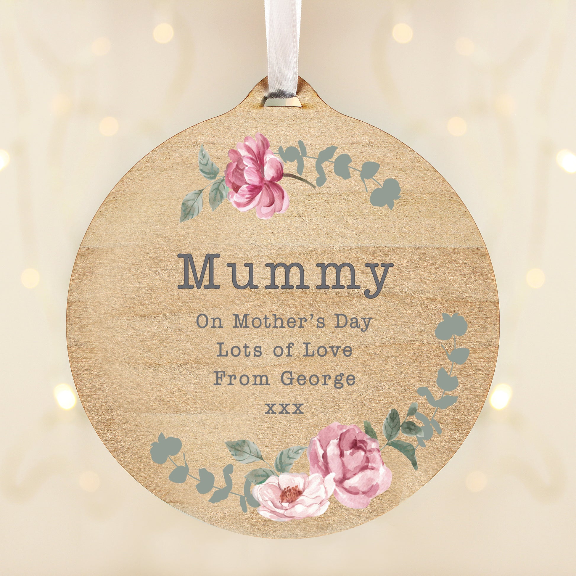 Personalised Floral Watercolour Round Wooden Decoration