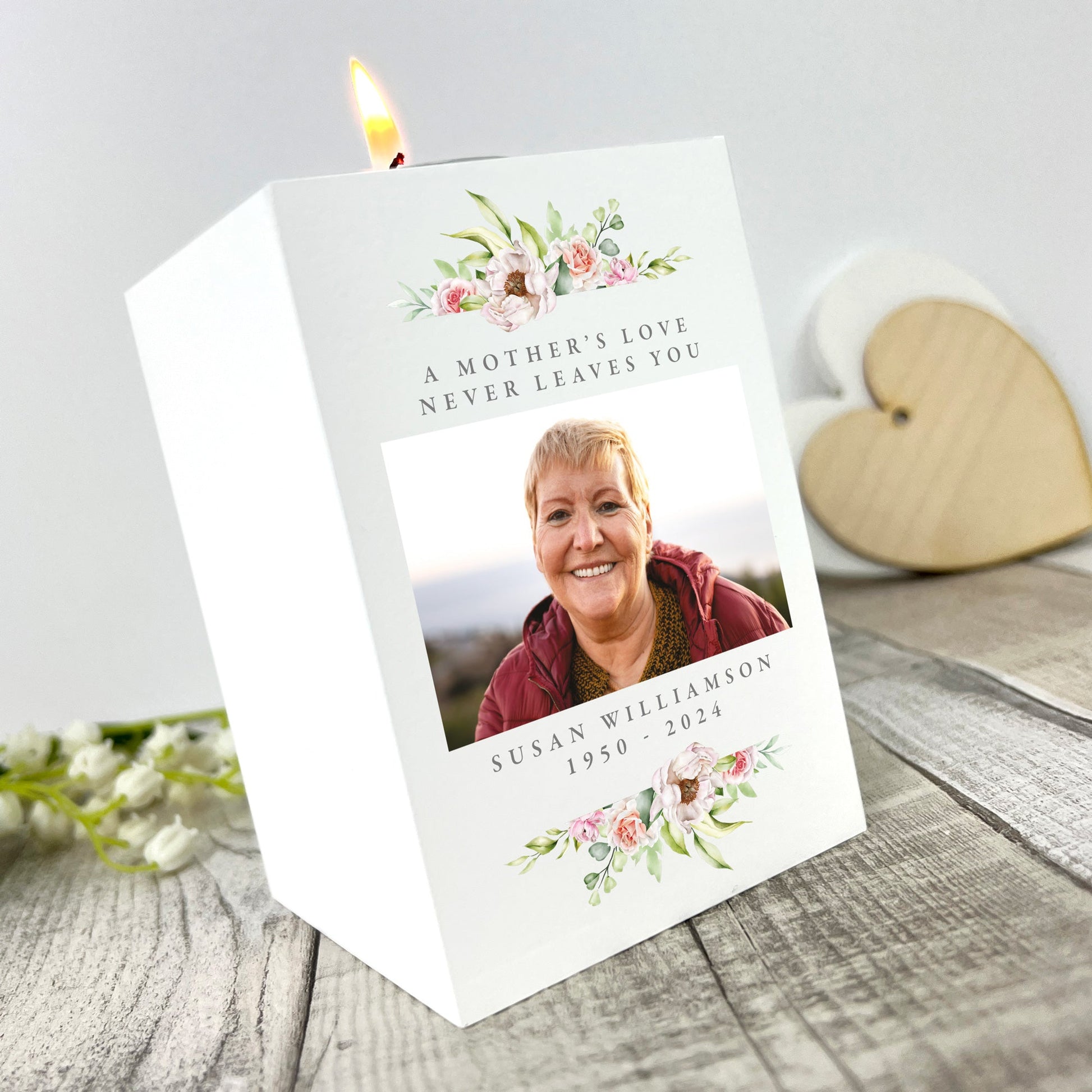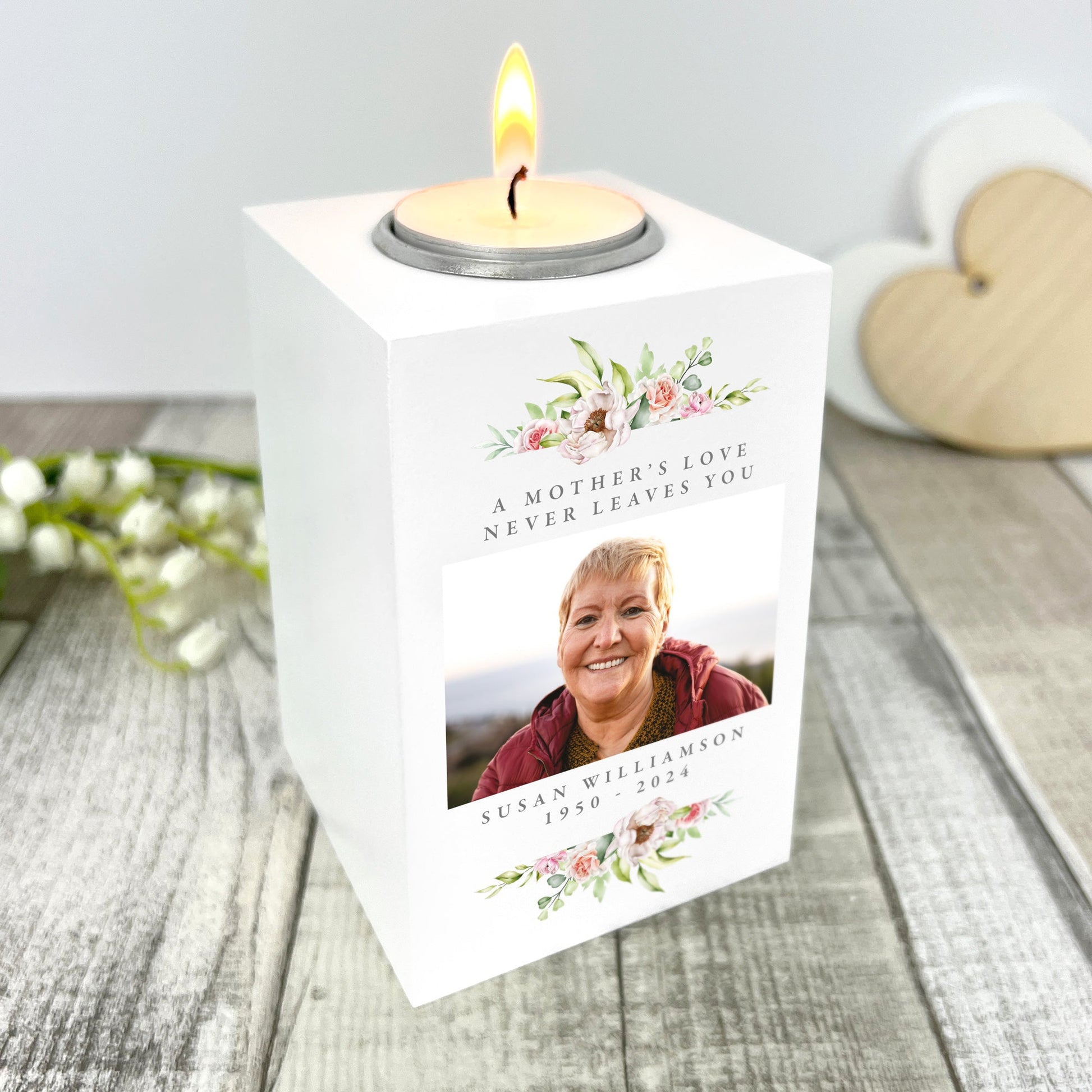 Delight Mum this Mother's Day with a personalised photo candle holder, a special gift she'll cherish. This wooden tea light holder can be personalised with a photo and a message.