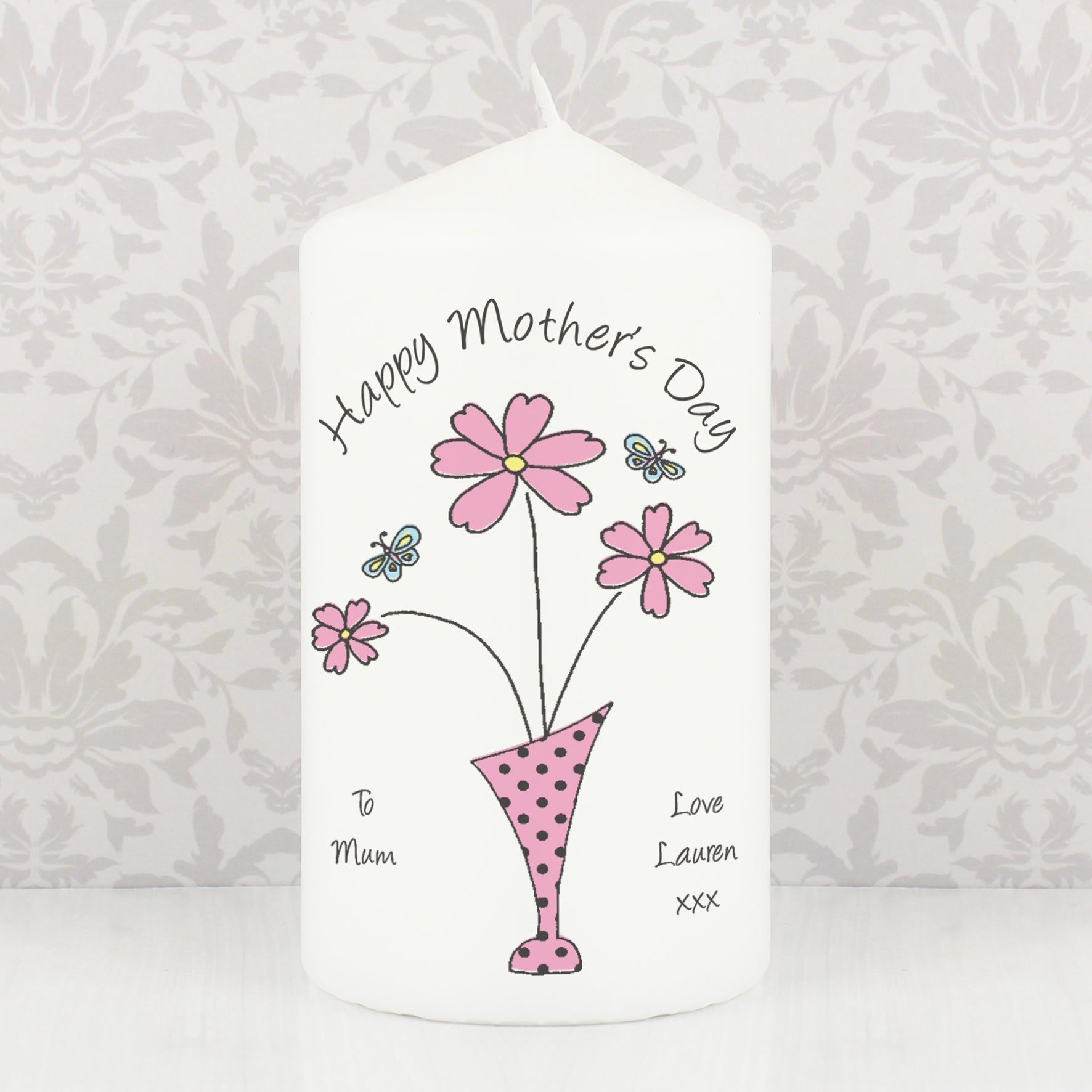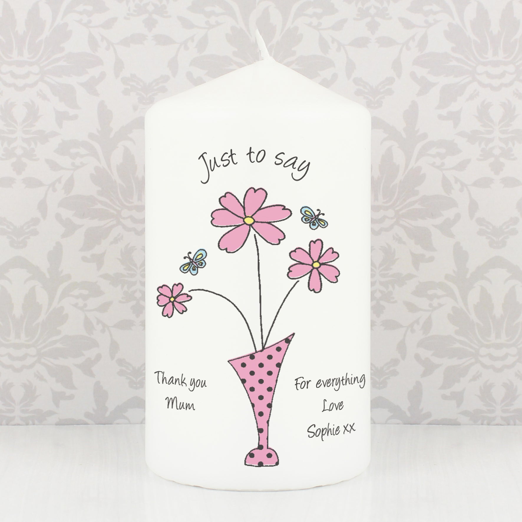 Personalised Flower in Vase Message Pillar Candle