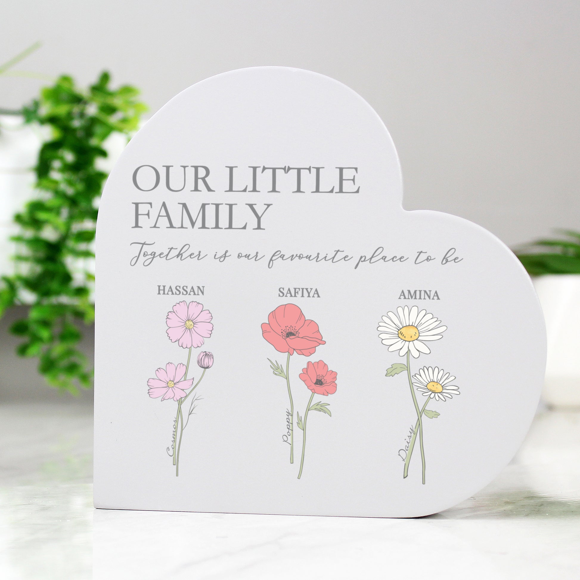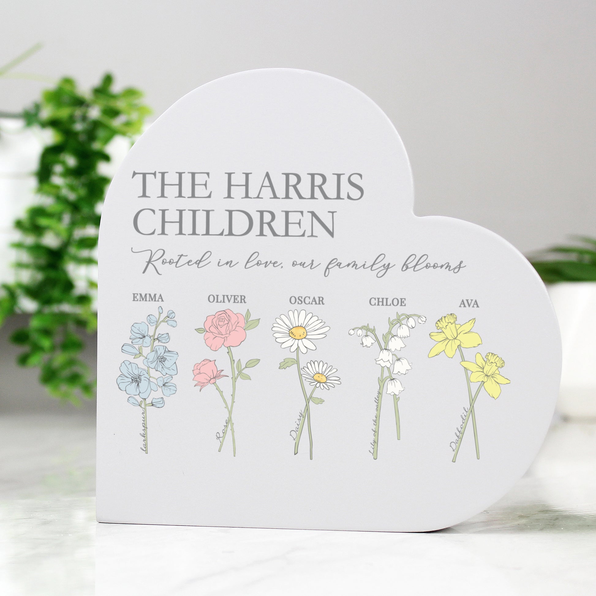 Personalised Flower of the Month Family Heart Ornament
