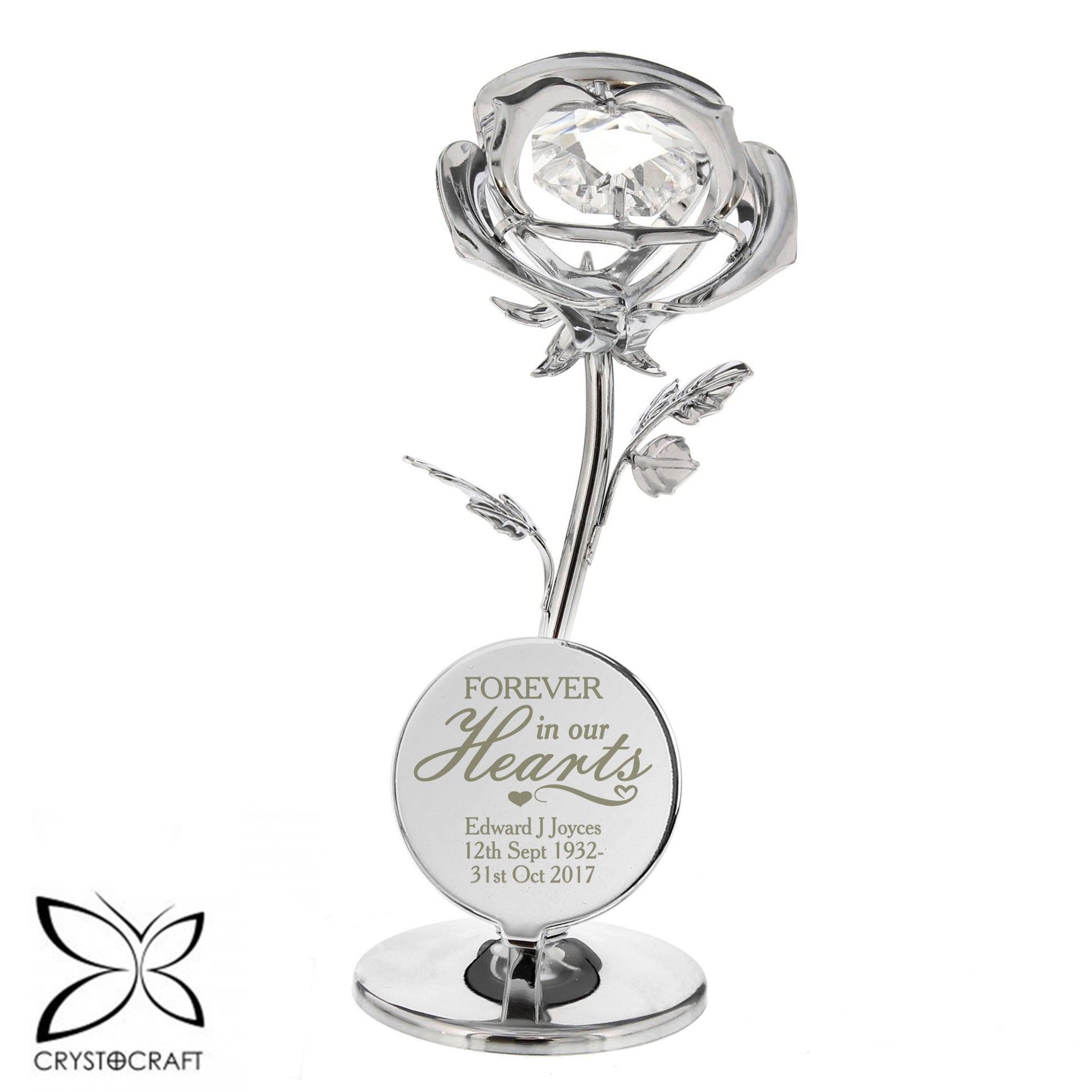 Personalised Forever in Our Hearts Crystocraft Rose Ornament